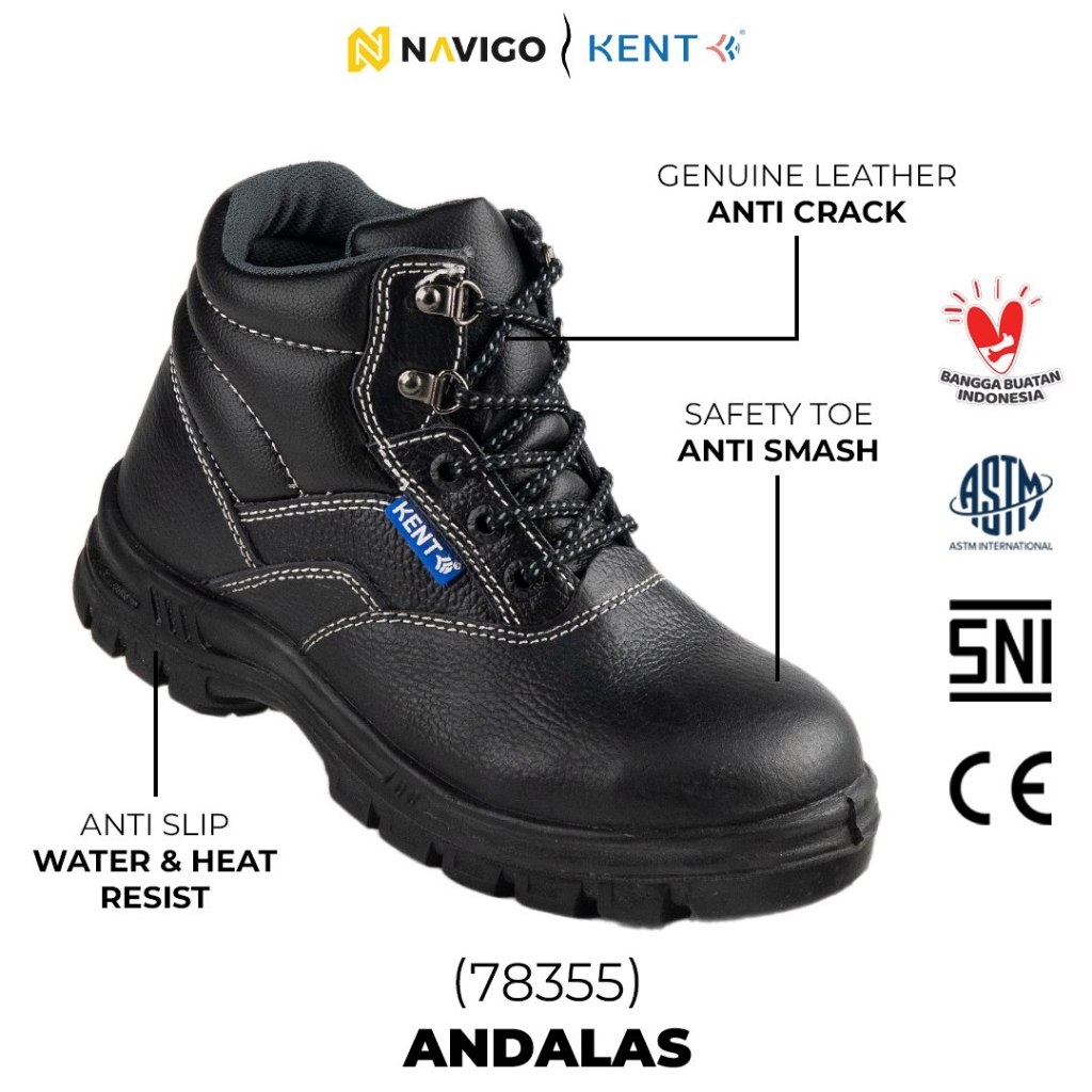 NAVIGO X KENT Sepatu Safety Pria Wanita ANDALAS 78355 - Standar SNI ASTM CE Kulit Asli Ujung Besi Slip Resist