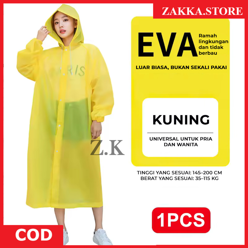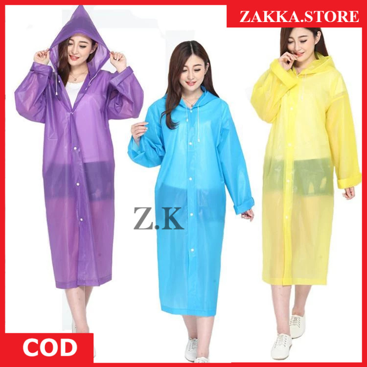 Zakka Jas Hujan Plastik EVA Tebal Tali Topi Transparan Jas Hujan Poncho Korea EVA Anti Air All Size