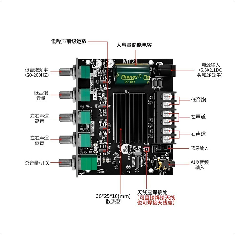 ZK-MT21 2.1 channel bluetooth modul penguat daya digital daya 50W * 2 + 100W nada tinggi dan rendah super subwoofer