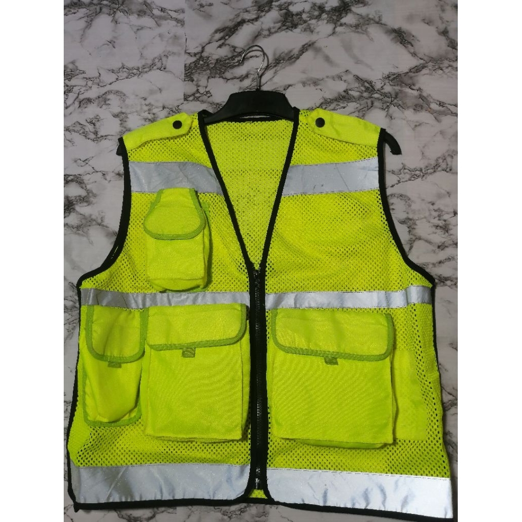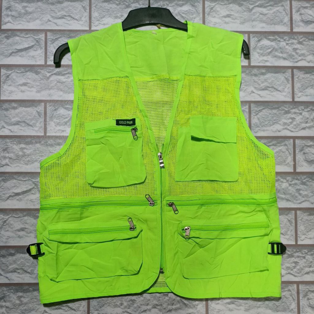 vest tactical cargo oranye dan hijau stabilo reflektor series pemantul cahaya memantulkan bersinar polantas parkir