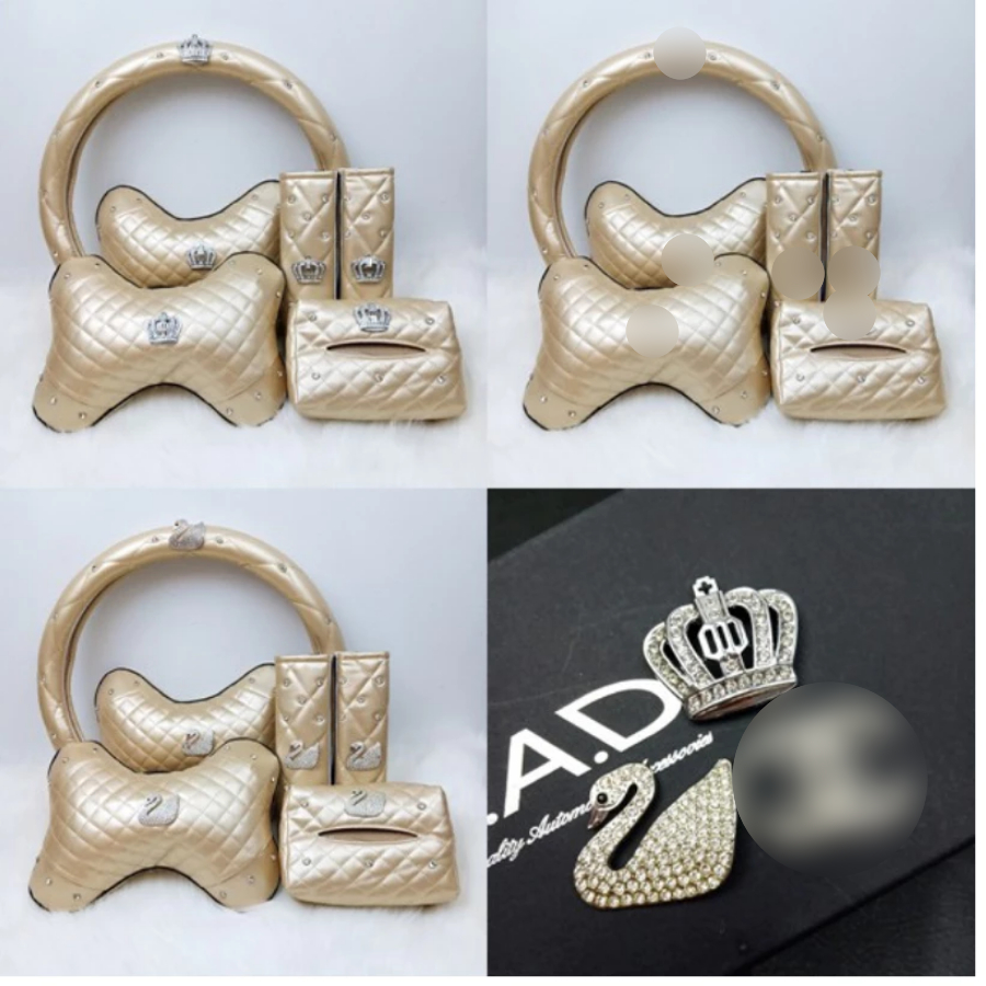 Dad Set 4 In 1 Crown CC Swan Sarung Stir Safetybelt Sarung Tisu Gantung Sunvisor