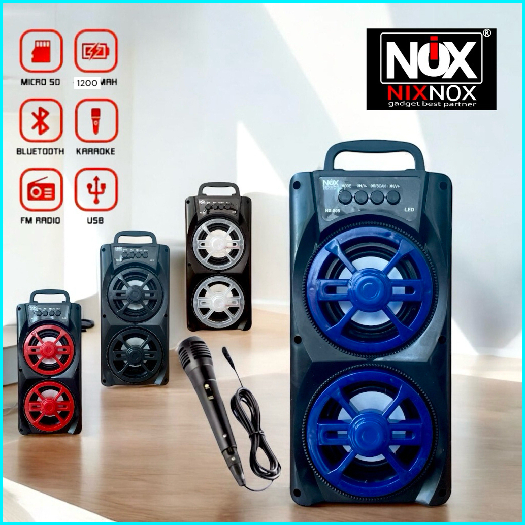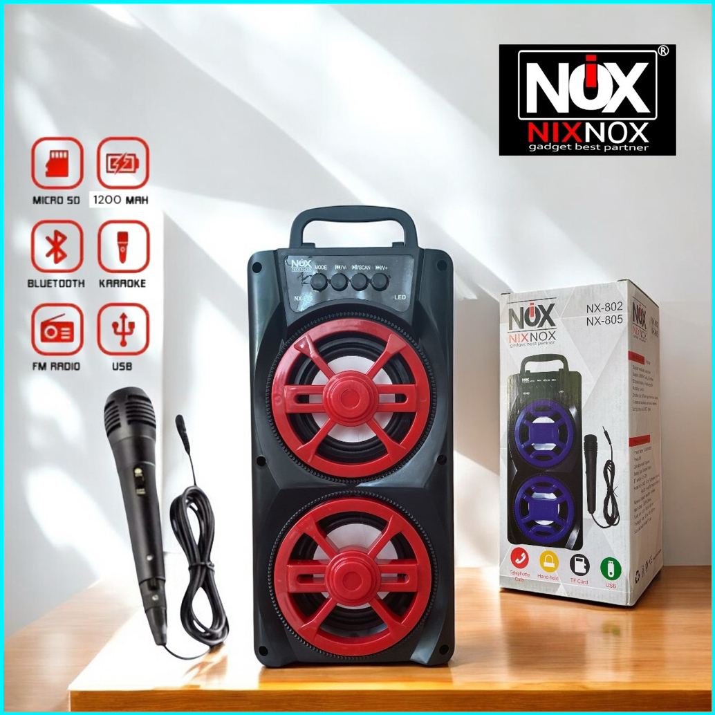 Speaker Bluetooth Karaoke Nixnox Nx-805 Free Mic Big Bass Speaker Portabel Termurah