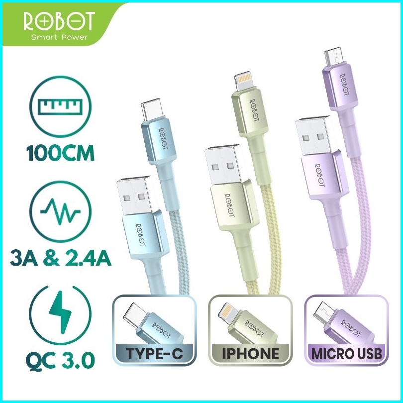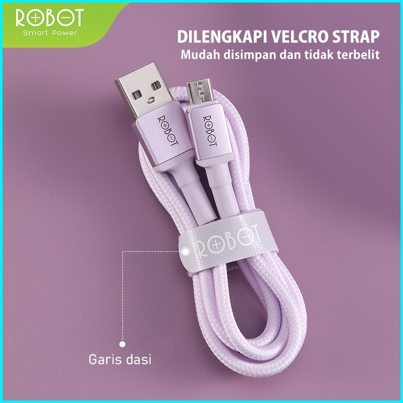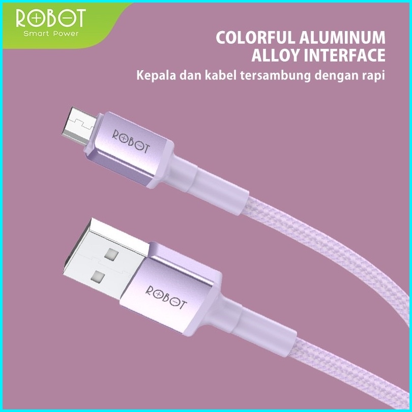 Robot Kabel Data Android Micro Type-c Lightning Iphone Data Cable 1100 200cm Colorful Garansi Original