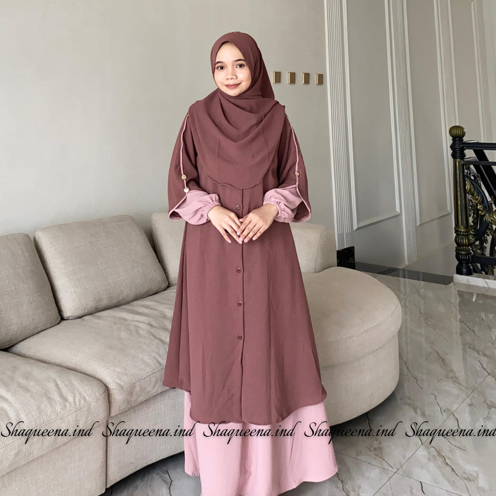 Baju muslim wanita oneset azmiya setelan tunik rok syar’I melayu gamis set