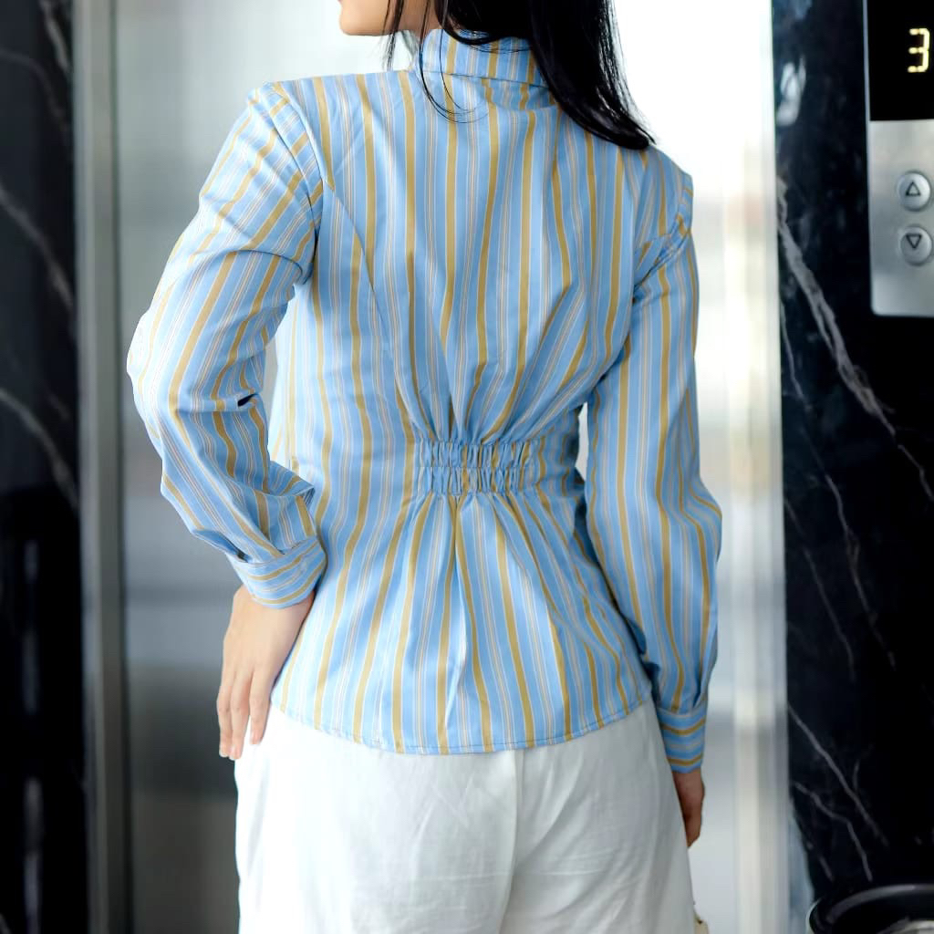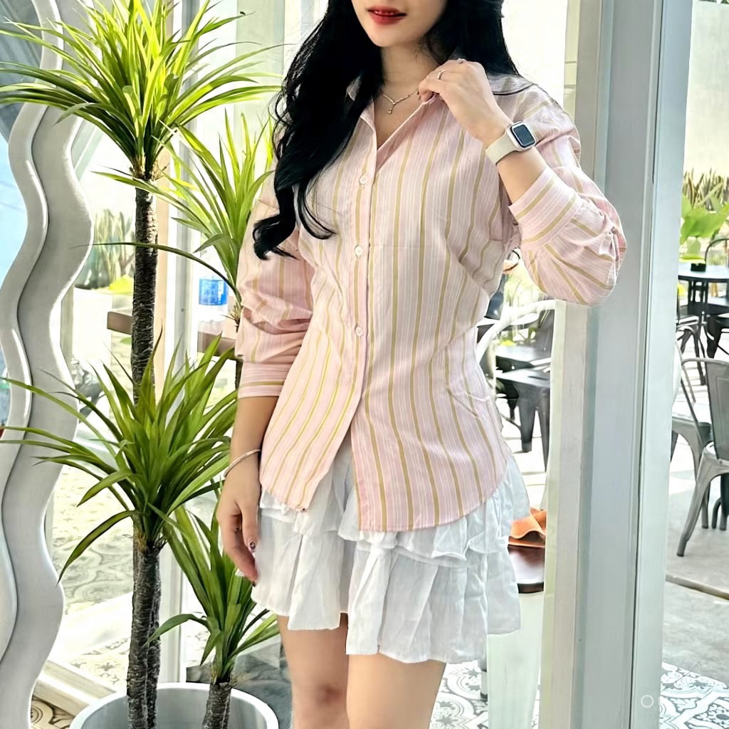 KEMEJA WANITA GARIS LENGAN PANJANG CASUAL STYLISH - ATASAN KANTOR & HANGOUT - KEMEJA WANITA TERBARU DAN KEKINIAN