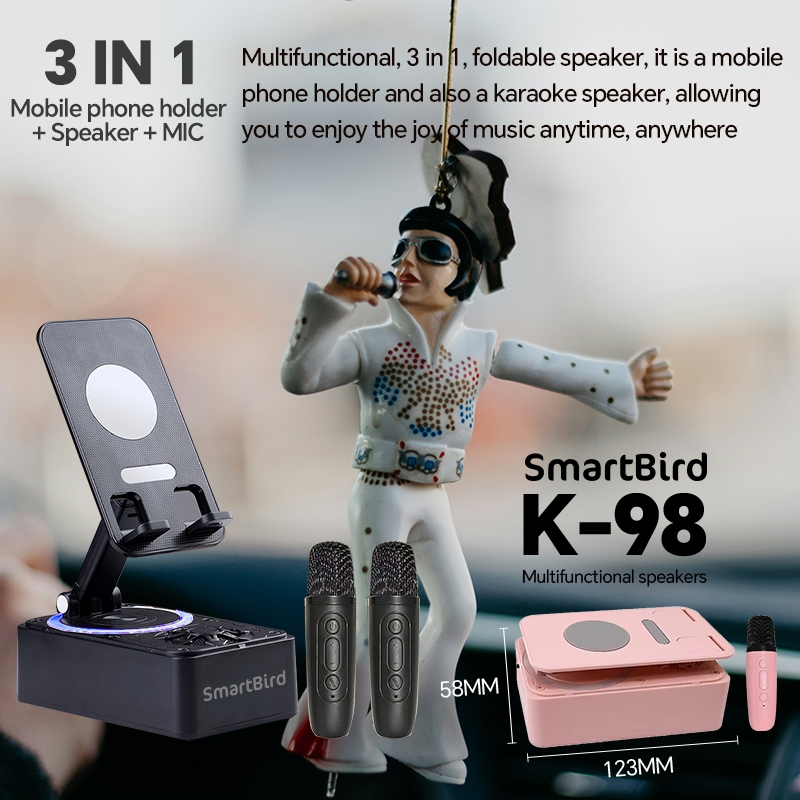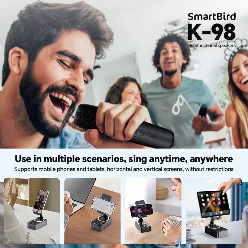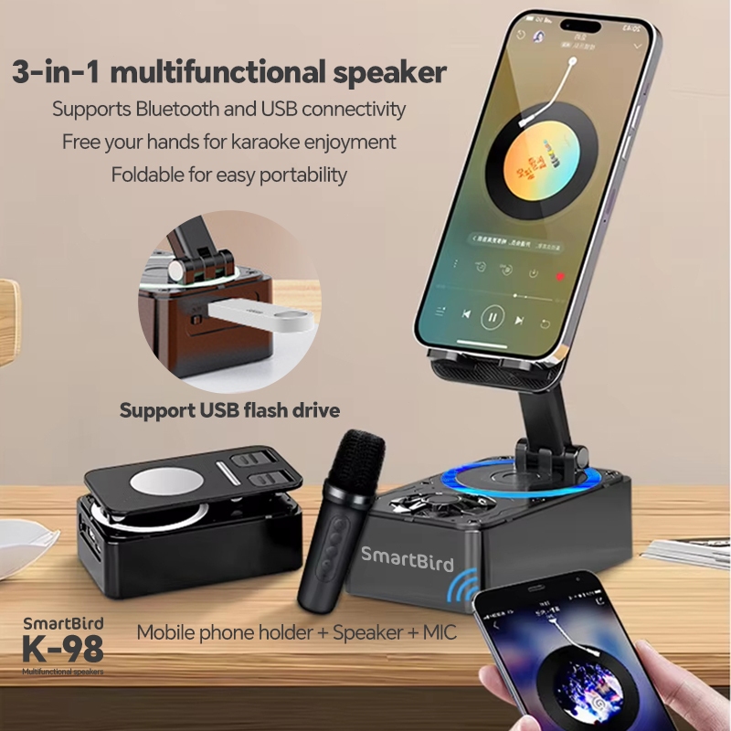SmartBird Speaker K98 Speaker&Karaoke&Phone Holder 3 in 1 LED Portable Foldable Bluetooth With microphone Speaker HIFI Stereo