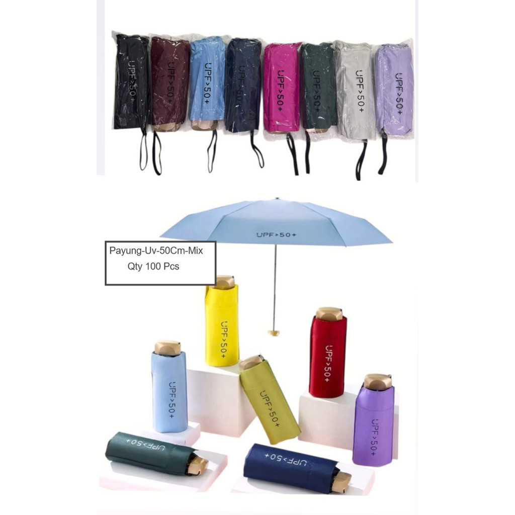 Payung Lipat Anti UV UPF 50+ Motif Polos Folding Umbrella Ultra Violet Payung Tabir Surya