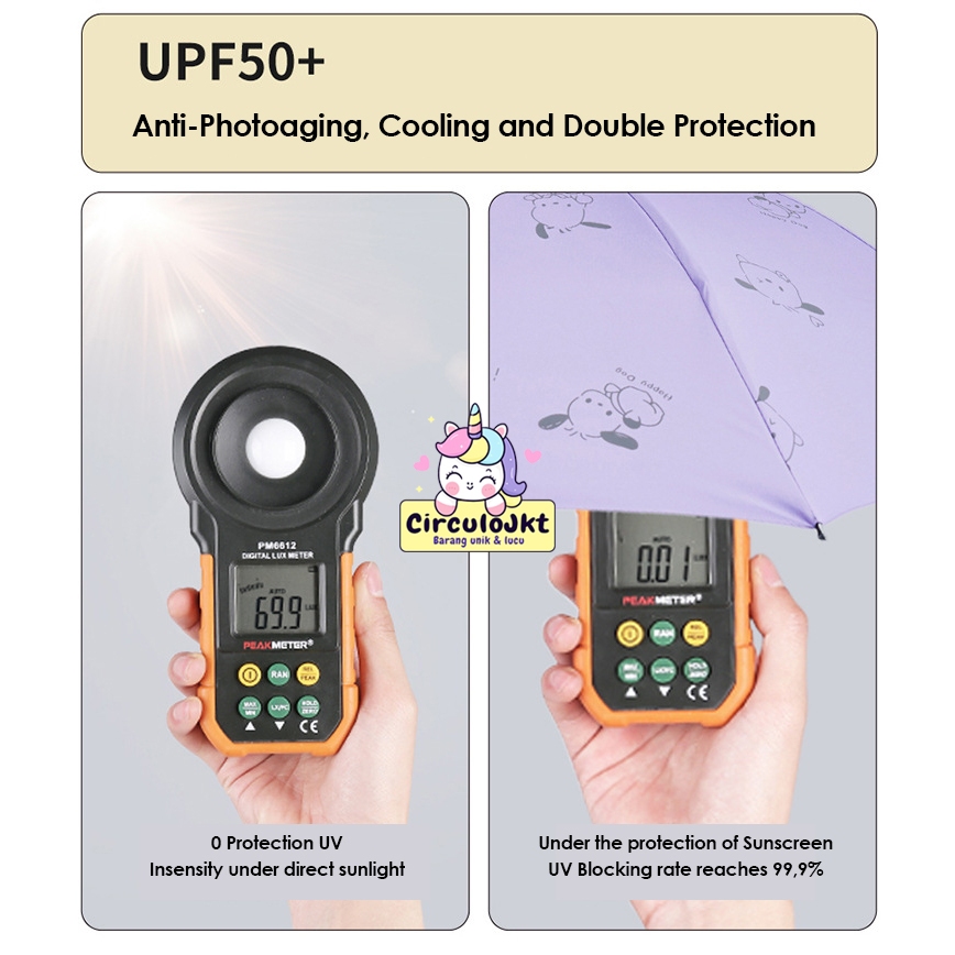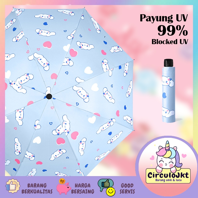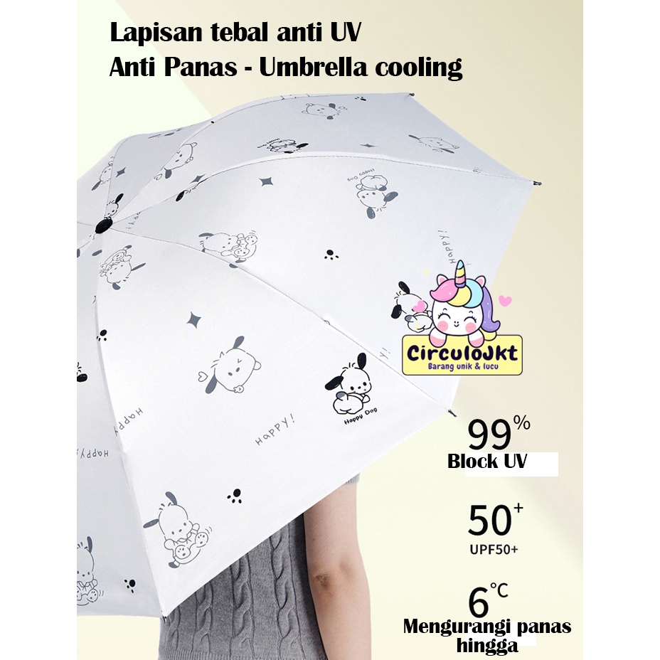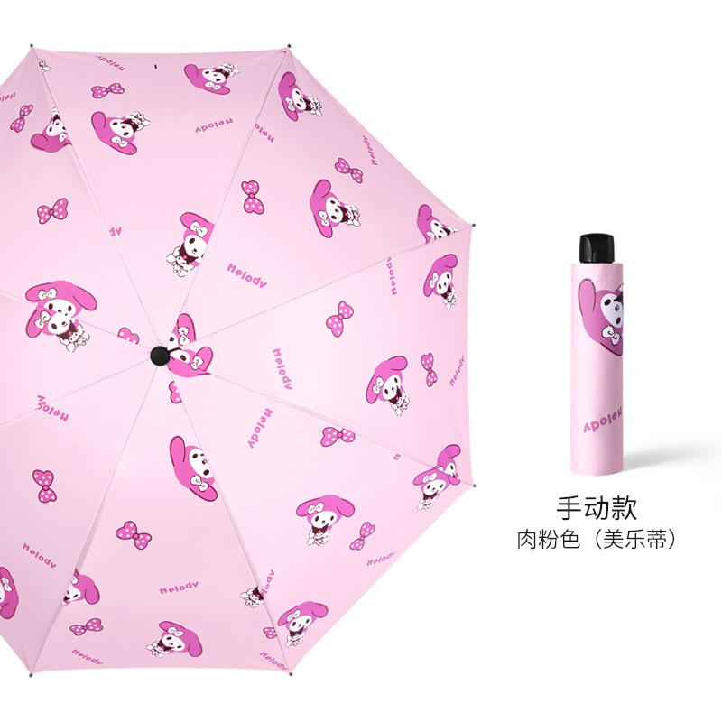 Payung Lipat Kuromi Sanrio | Payung Mini Karakter Lucu Anti Sinar UV Serbaa Untuk Panas Dan Hujan