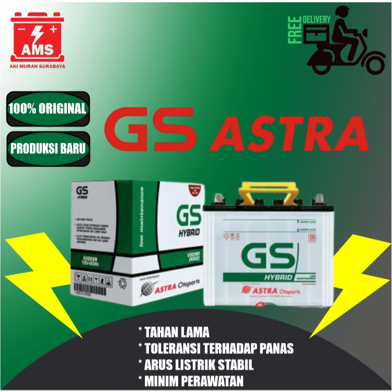 Aki GS Astra Hybrid NS70 12V 65 Ah Mobil Panther, Kijang Kapsul, Surabaya Gratis Kirim & Pasang