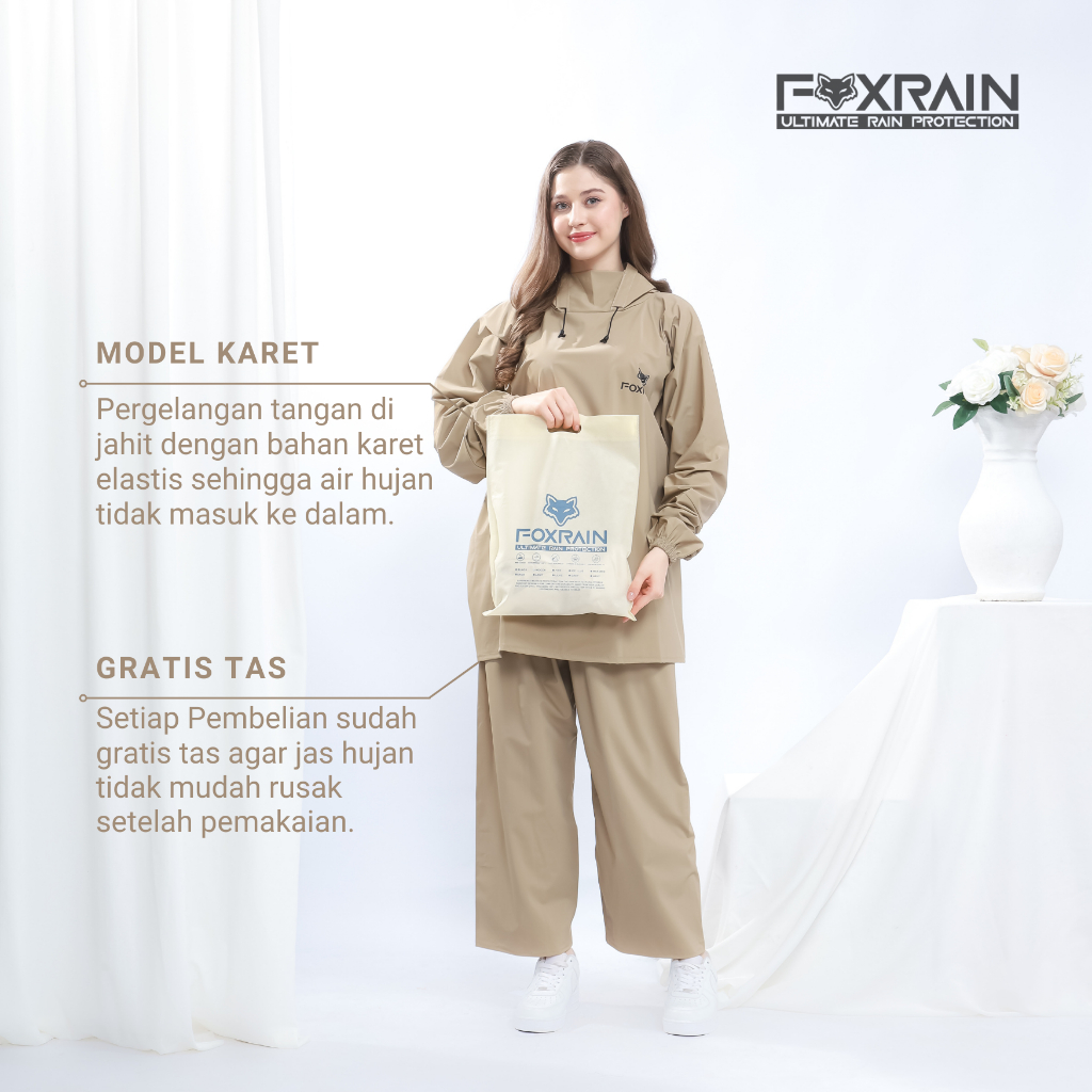 Jas Hujan FOXRAIN Hoodie Tanpa Resleting Bahan PVC 0.25 Celana Full Press Anti Rembes & Anti Robek