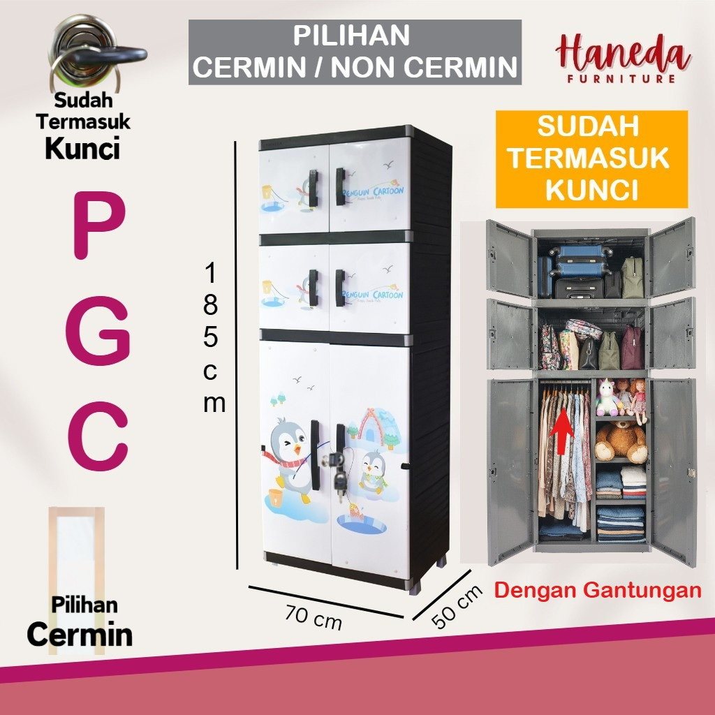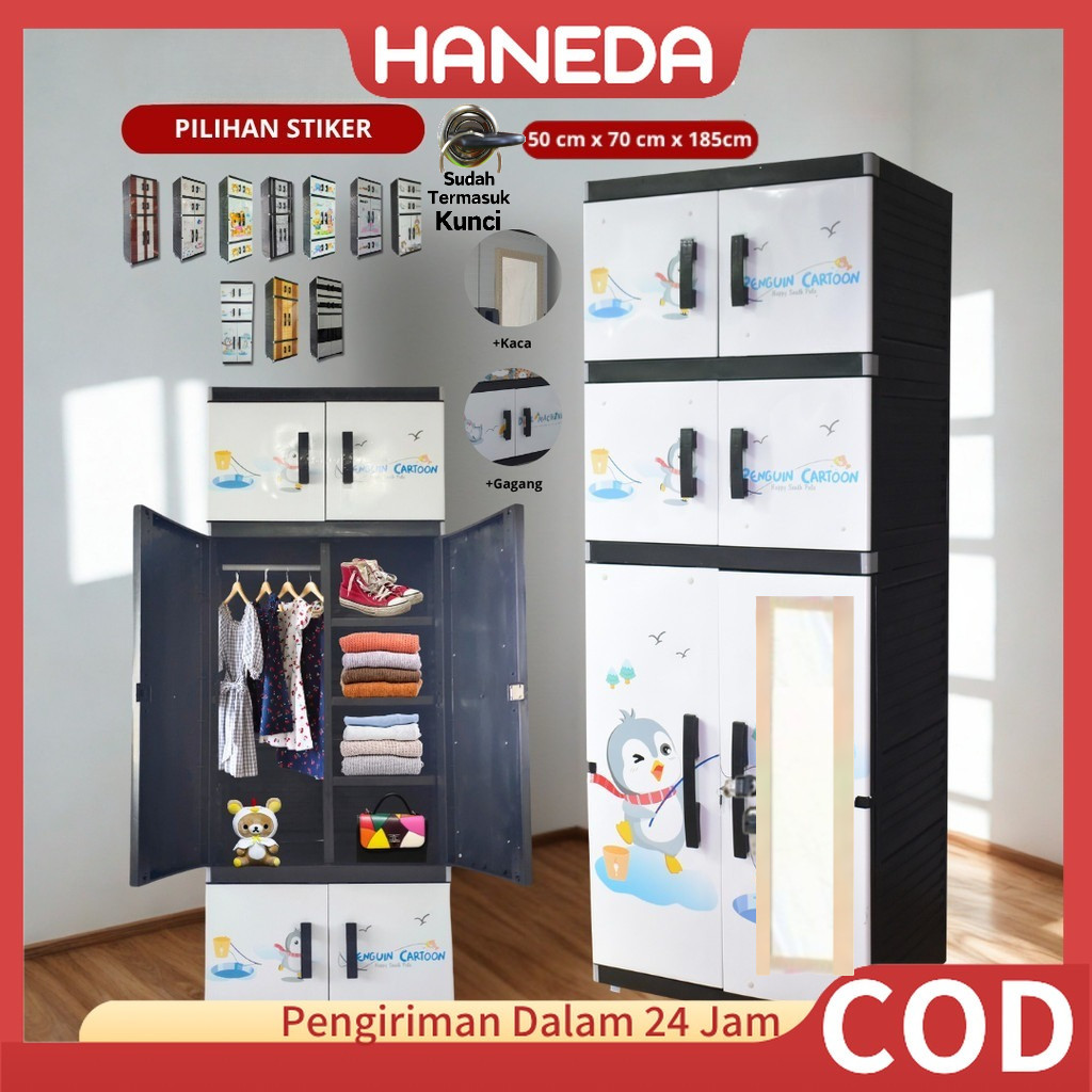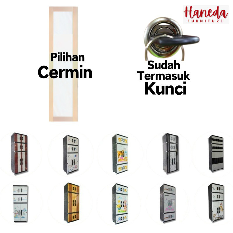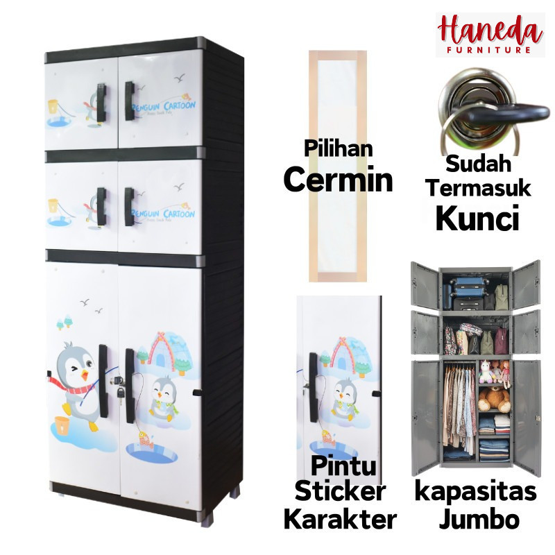 HANEDA Lemari Pakaian Plastik MR PLAS GANTUNGAN STICKER JUMBO Lemari Susun Karakter Cermin Kunci