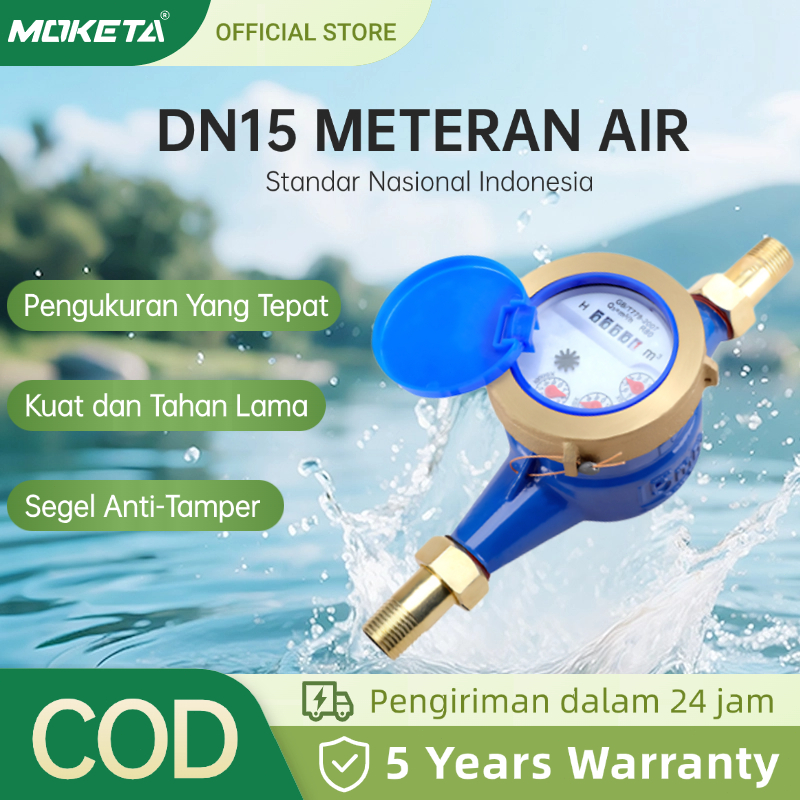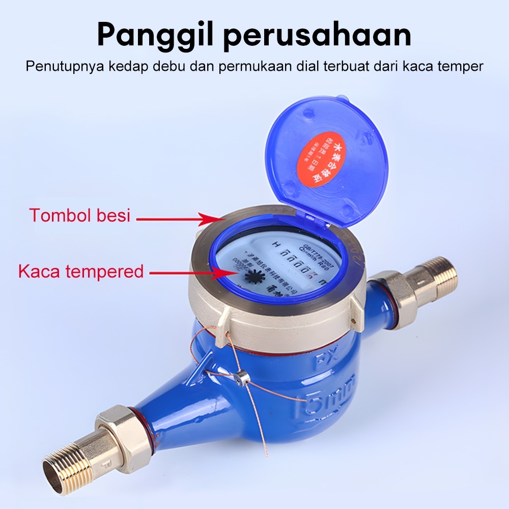 MOKETA Meteran Air PDAM SNI 1/2" Body Besi Water Meter Ledeng PDAM 0.5 Inch Meteran PDAM Flow Meter