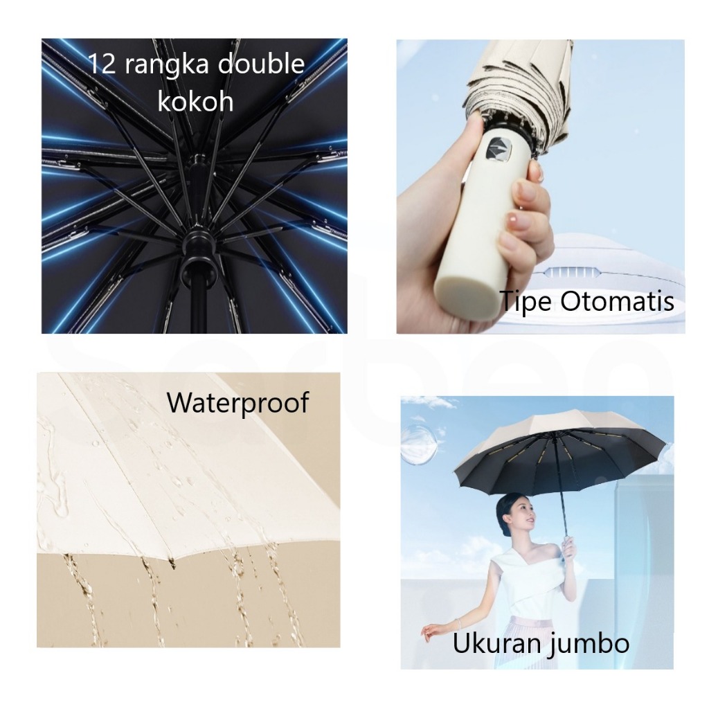 Sarben - Payung Lipat Otomatis Premium - Permukaan Waterproof - Anti UV Upf 50+ dan Tahan Hujan dan Tahan Angin
