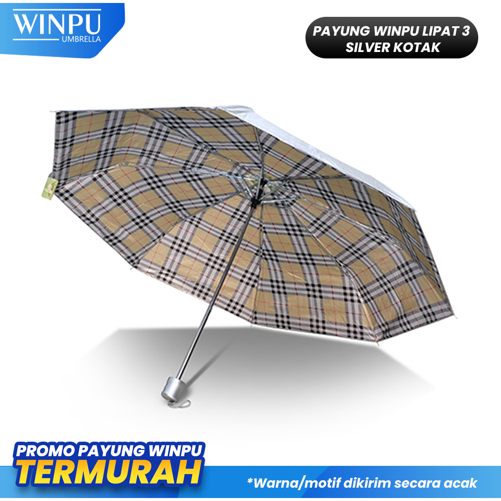 WINPU payung lipat 3 murah motif silver kotak tebal bagus obral termurah