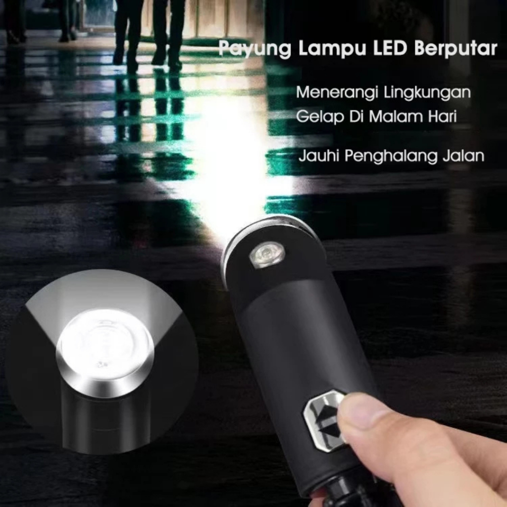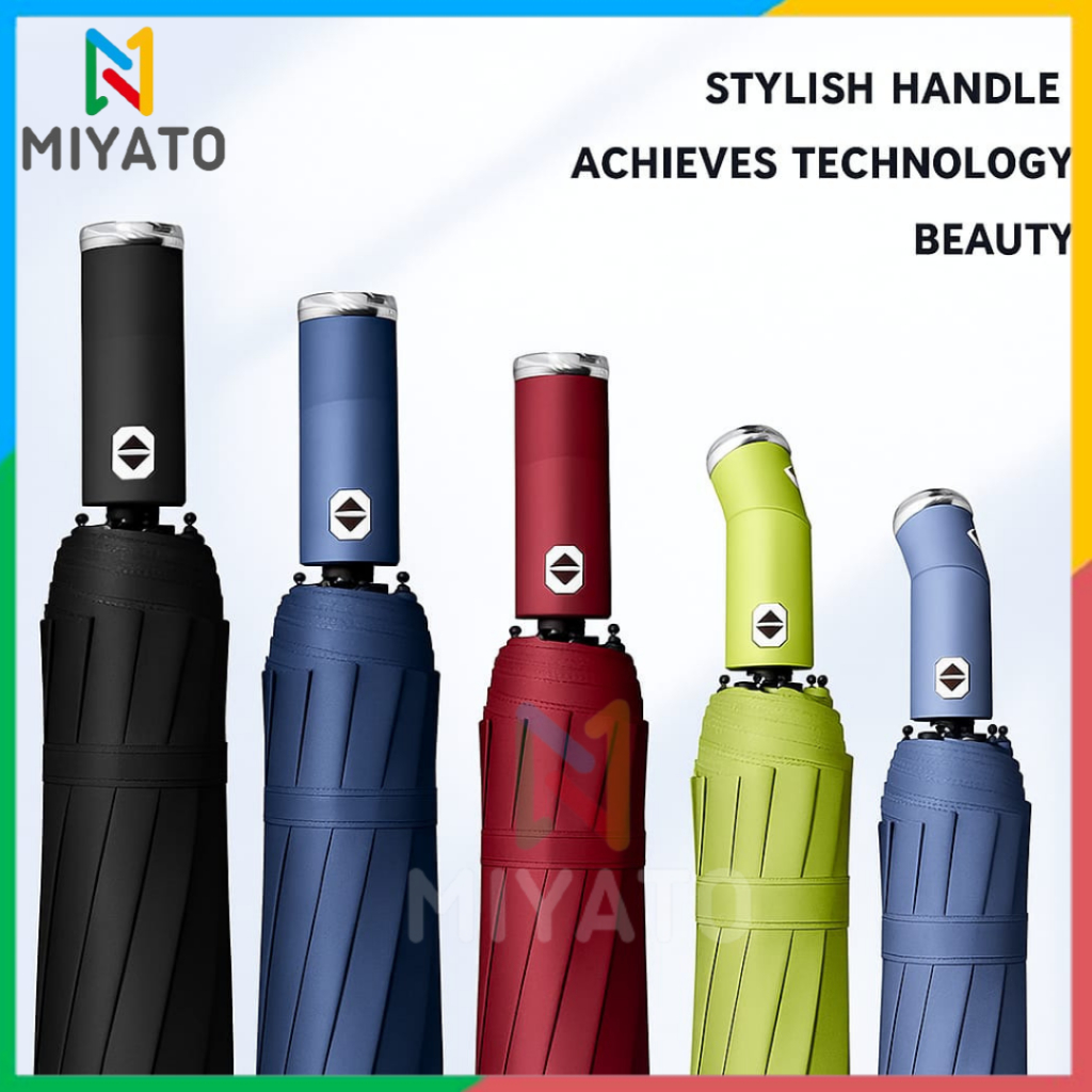 Miyato Payung Lipat Otomatis Jumbo + Senter Buka Tutup Anti UV - Payung Lipat Senter LED Otomatis Premium Anti Panas Ant
