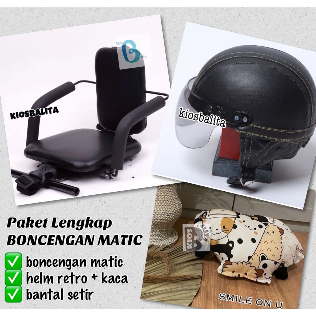 PAKET LENGKAP KURSI BONCENGAN MOTOR ANAK MATIC + HELM RETRO + BANTAL SETIR