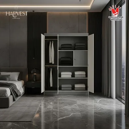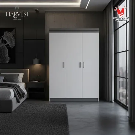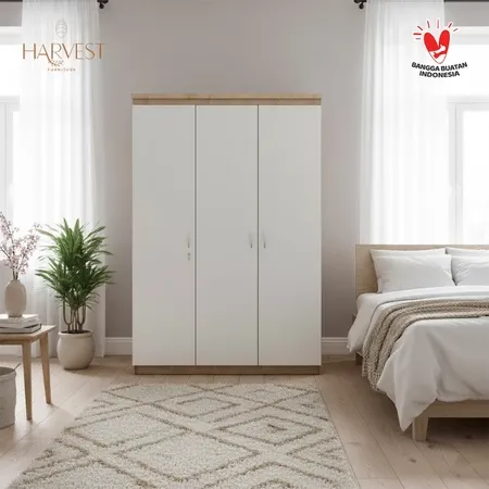 LEMARI PAKAIAN BAJU 3 PINTU MOTIF KAYU HARVEST FURNITURE LEMARI MINIMALIS TERBARU LEMARI BAJU TERMURAH TERLARIS TANPADP