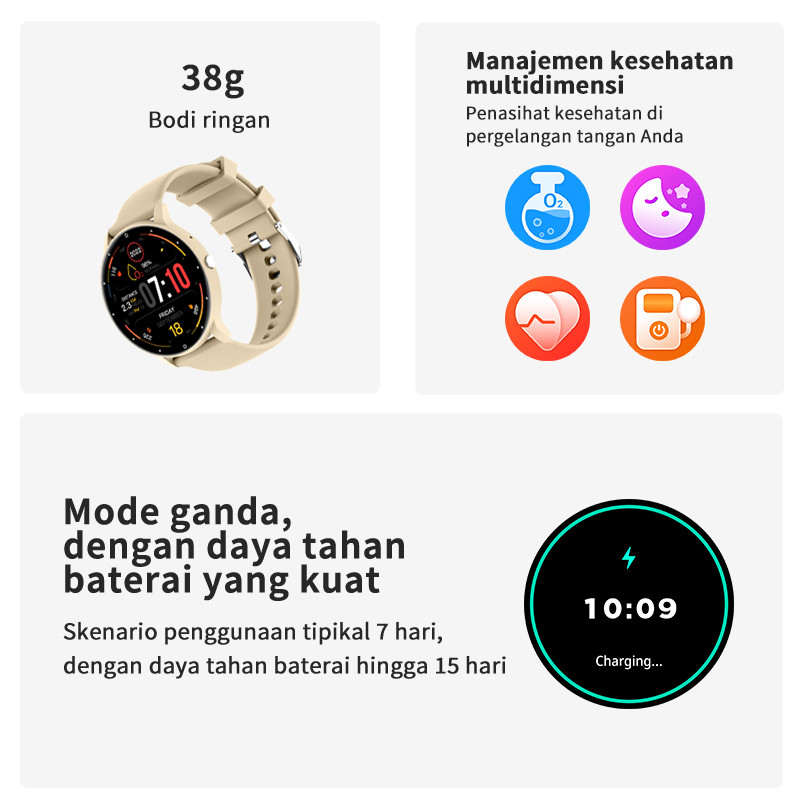 SenTechX Neo R2 Smartwatch - Layar HD 1.39" | Monitor Jantung & Tidur | Tahan Air IP68 | Mendukung Strava | 100+ Modes O