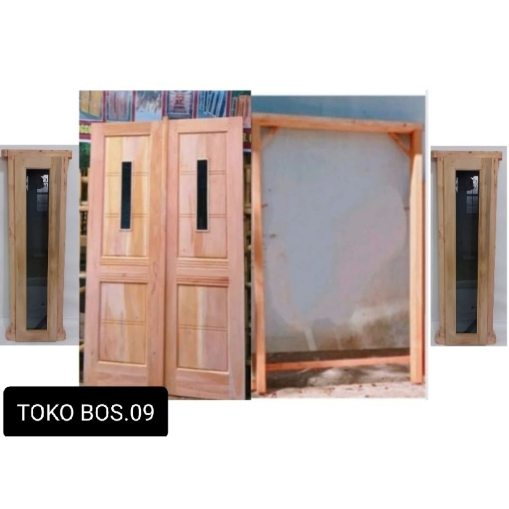 1.Set Pintu Depan Kupu Kupu Dan 2 Jendela Kayu Mahoni Perhutani