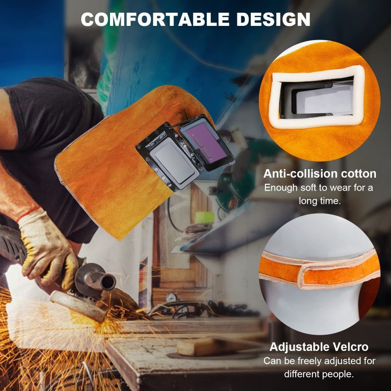 Topi Las Kulit Pelindung Las Kepala Pakai Helm Leather Welding Mask Untuk Welder