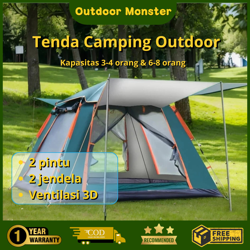 OUTDOOR Monster (GARANSI 1 TAHUN) Tenda Camping 4-6 Orang Portable Waterproof Camping Tent / Tenda Gunung