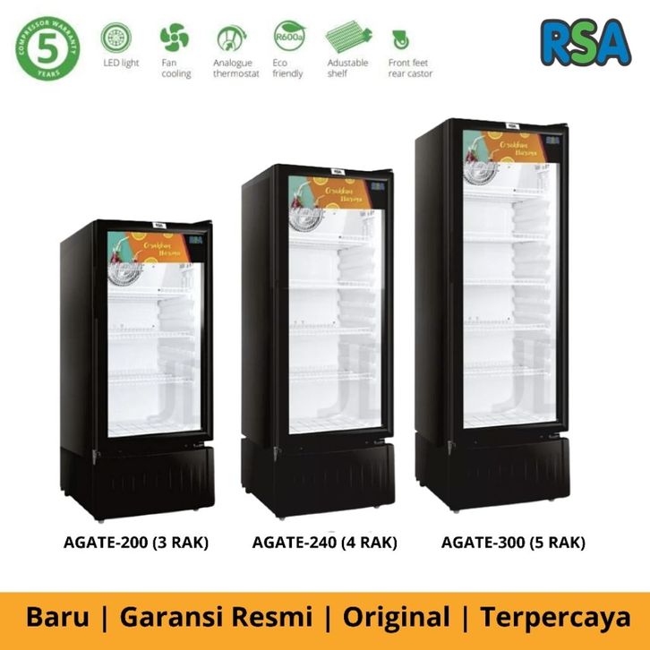 SHOWCASE RSA AGATE-300 (281L) 5 RAK / AGATE-240 (231L) 4 RAK / AGATE-200 (207L) 3 RAK resmi 3 tahun