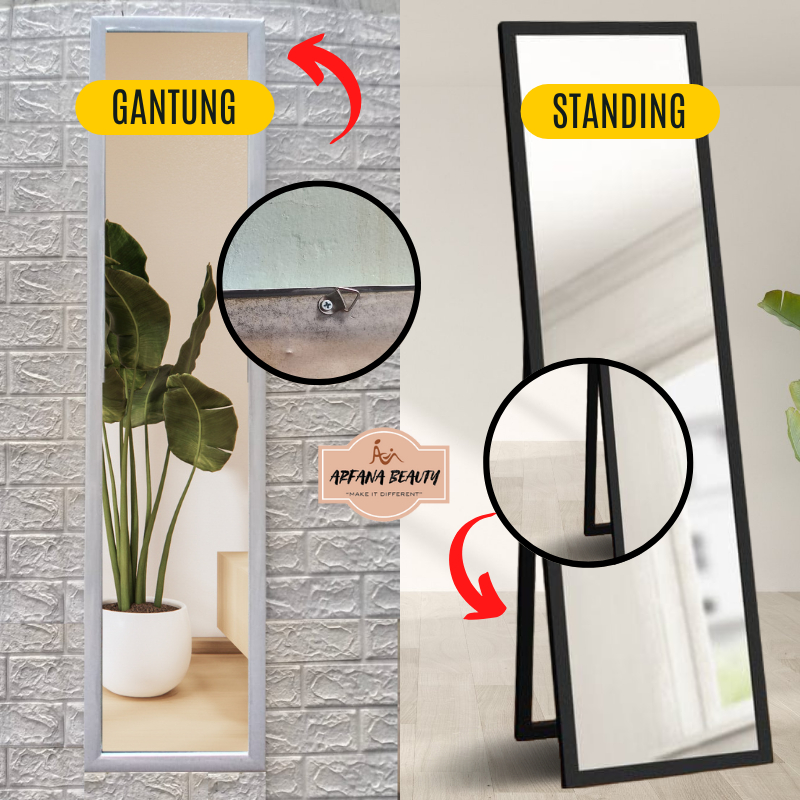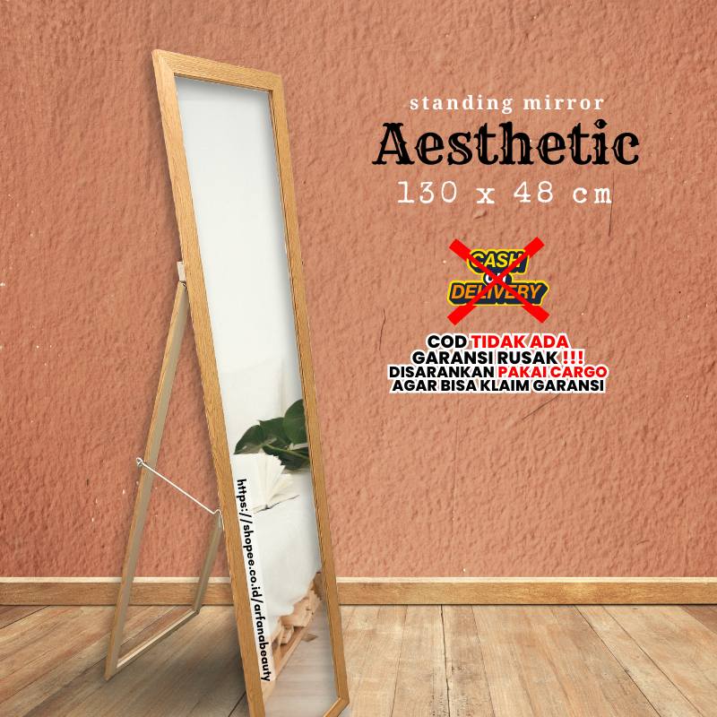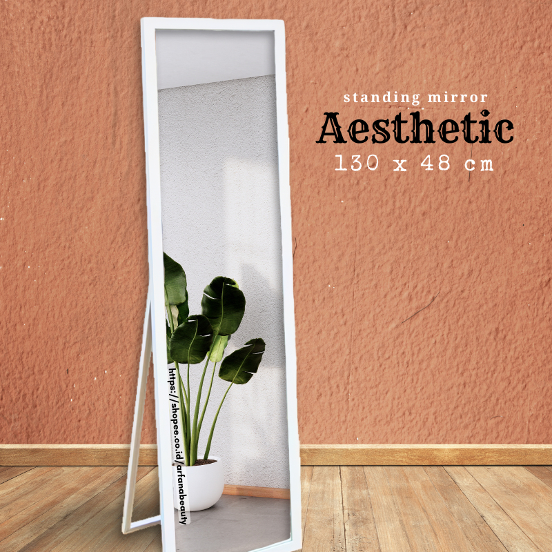 Cermin Aestetic Standing Mirror Kaca Cermin Dekorasi Dinding Full Body Kaca Sebadan Rias Make Up Panjang Sebadan Besar M