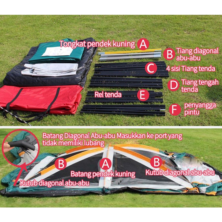 Tenda Camping 5-8 Orang 3.8✖2.6✖2M Orang Lipat Portable Waterproof Anti Air Outdoor Tenda Gunung