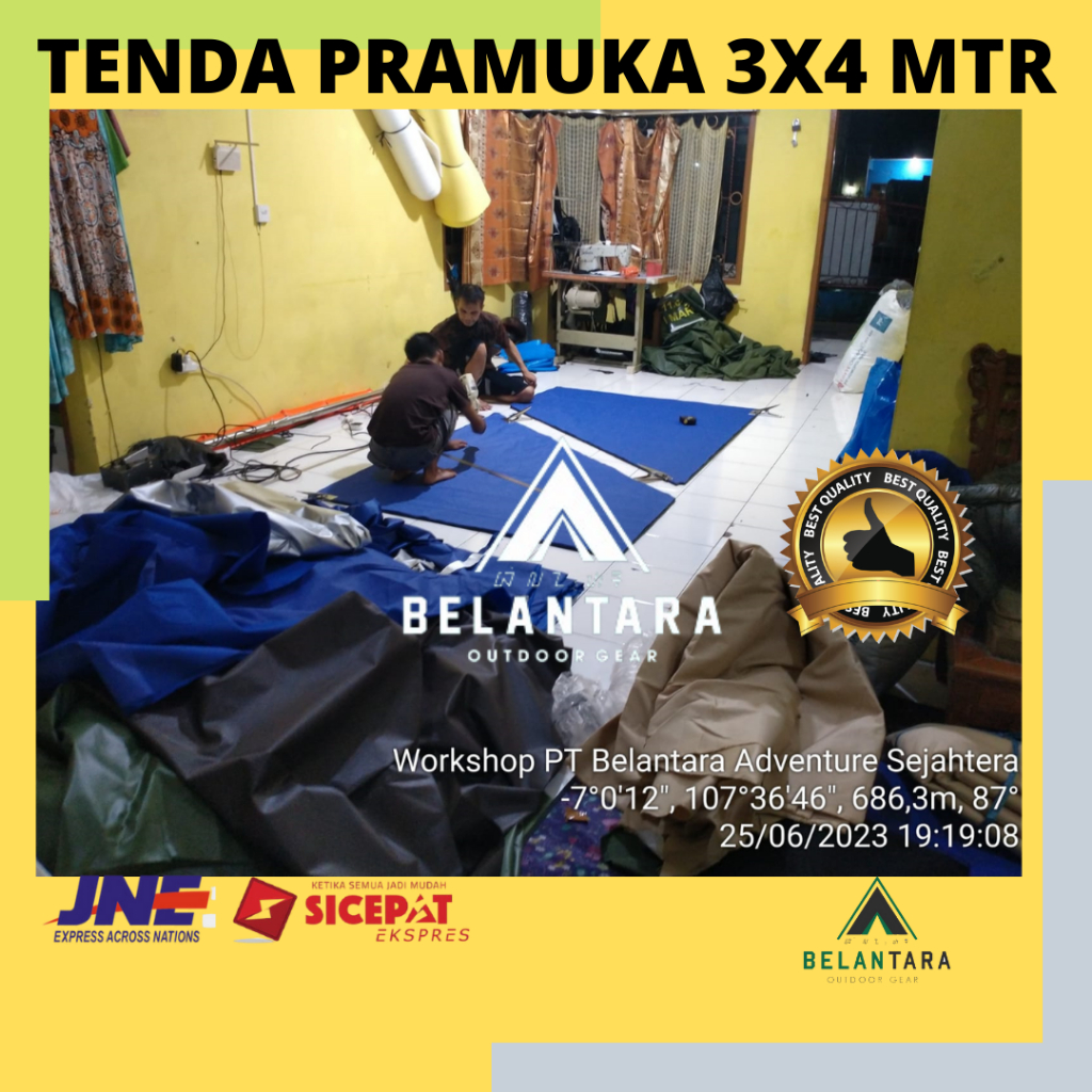 Tenda Pramuka 3x4 waterproof Kapasitas 8 10 12 Orang Bahan Dinier 300 Lion tanpa tiang belantara
