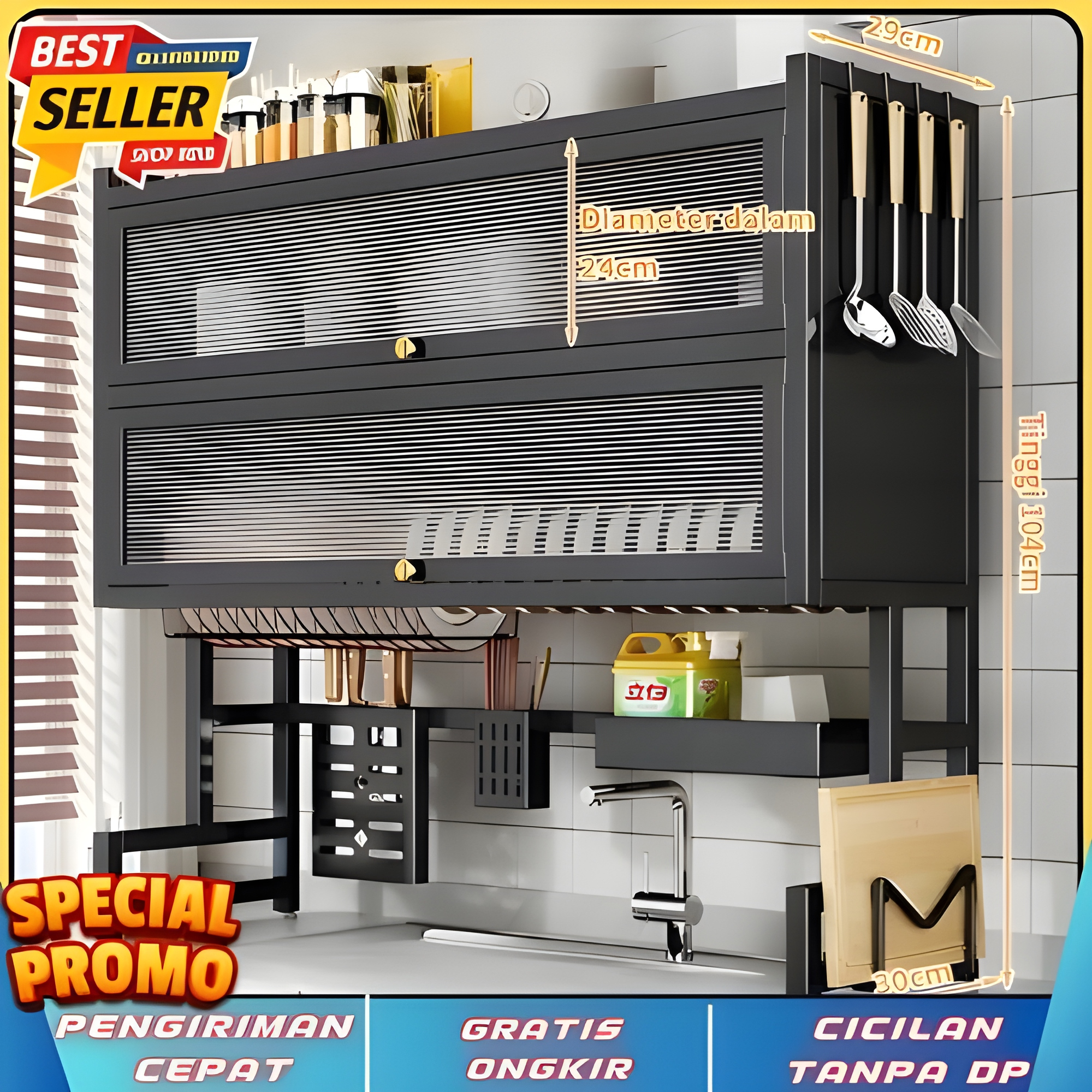 Rak Piring Wastafel Minimalis Modern Stainless steel Kaca Rak Dapur Rak Cuci Piring Dengan Kabinet Terlaris Kokoh Kuat