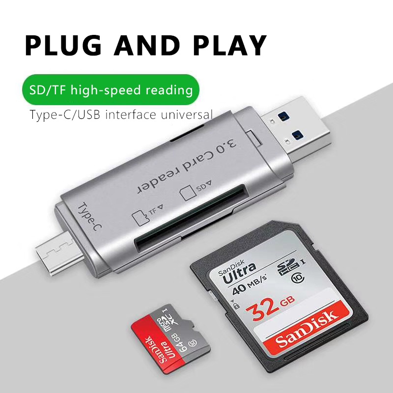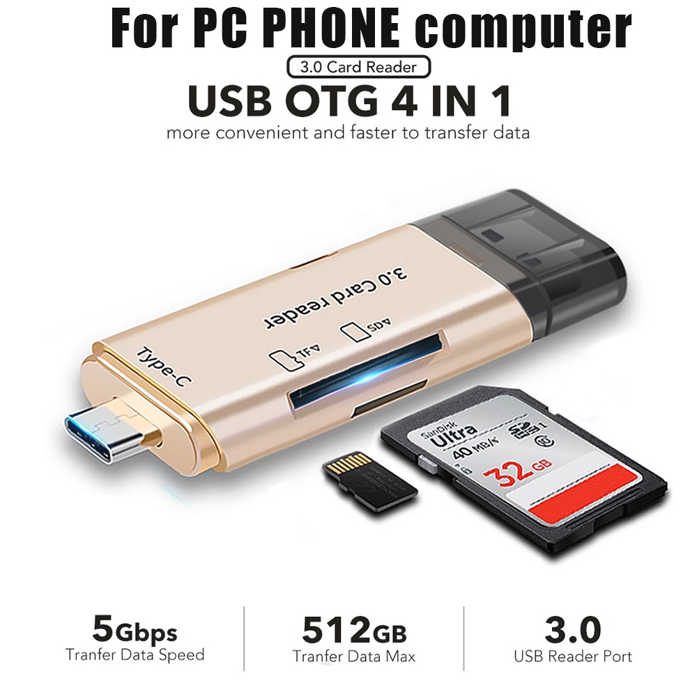 Actual 4 in 1 Card Reader High-Speed Smart 3.0 Metal Type C