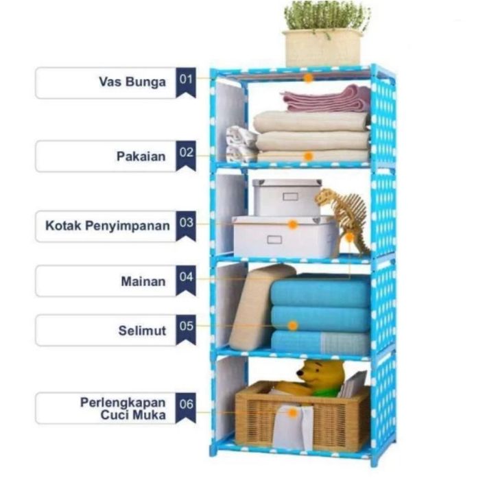 RAK BUKU 4 SUSUN 5 TINGKAT PORTABLE SERBAGUNA / RAK LEMARI BUKU 5 LAYER 4 TINGKAT MULTIFUNGSI SEPATU PAKAIAN BAJU
