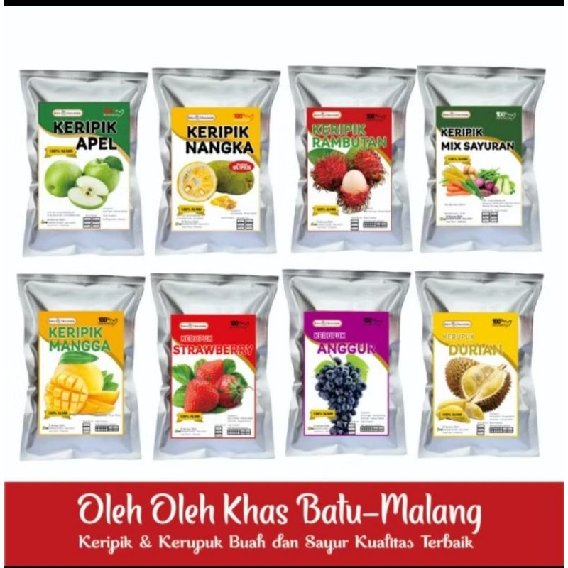 Kripik apel, Kripik nangka, Kripik salak, Kripik nanas, Kripik buah mix, Kripik sayur mix, Kripik sayurbuah mix, Kripik pisang, Kripik mangga