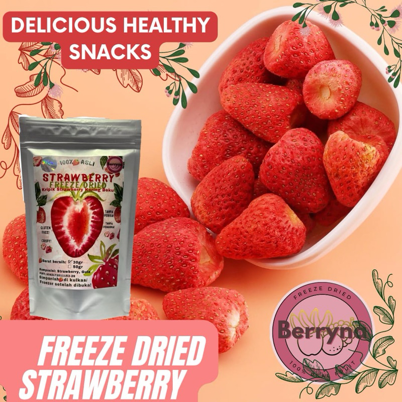 Berryna Strawberry Kering 50/30g Freeze Dried buah asli kering snacks Food Cemilan stroberi kering buah kering stroberi