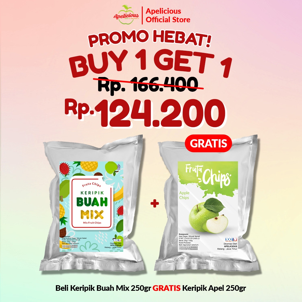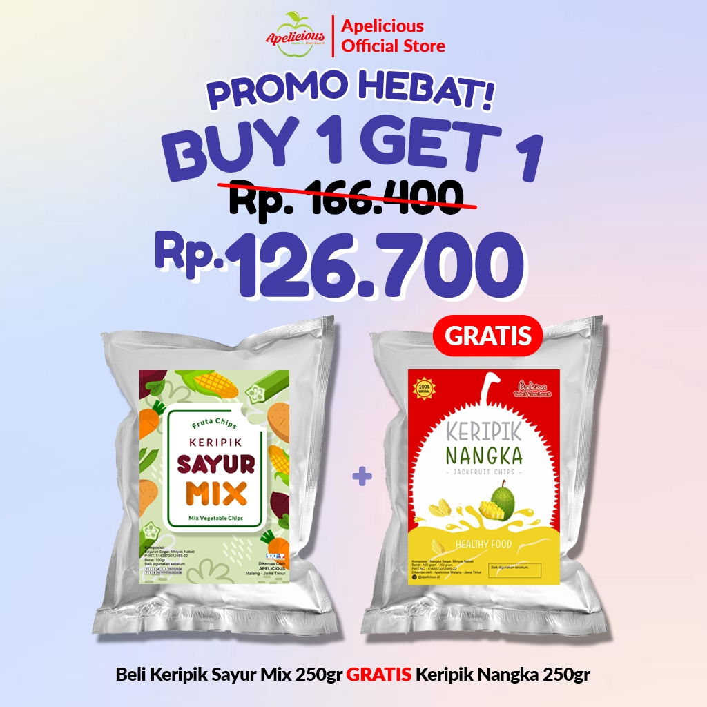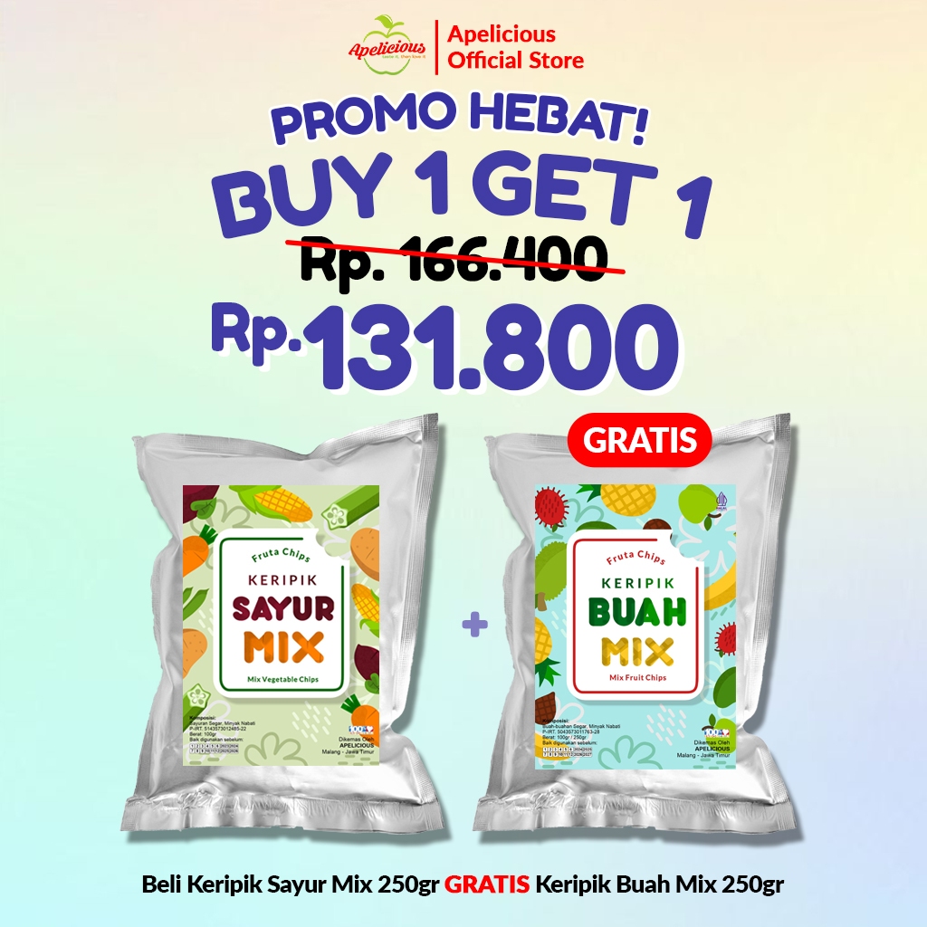 Apelicious Keripik Sayur Mix Original 250gr / Keripik Buah Mix 250gr + GRATIS Keripik Buah Mix 250gr