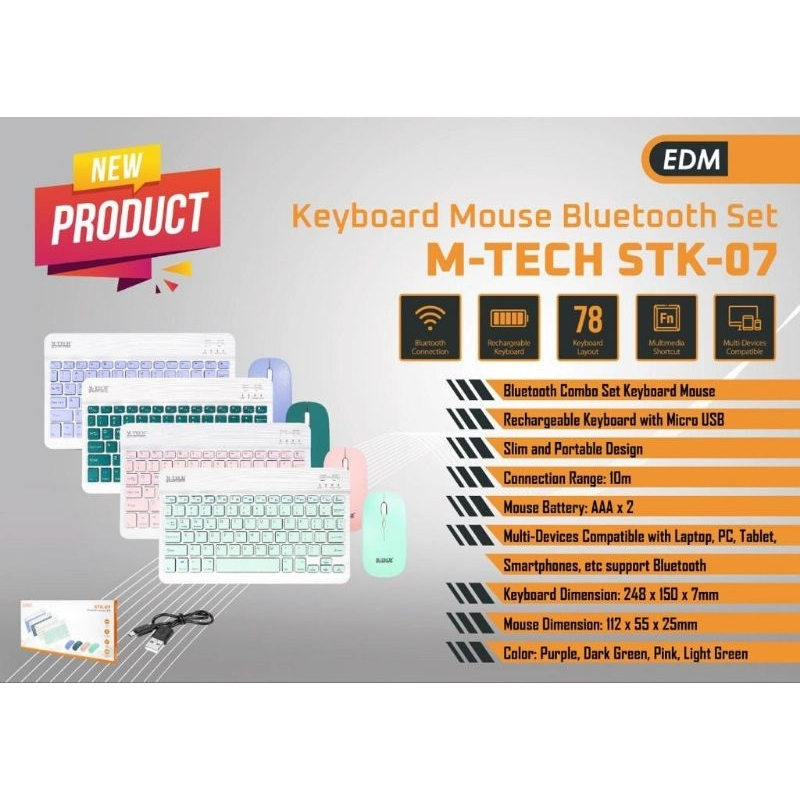 M-Tech Original Keyboard Mouse Combo Wireless Bluetooth STK 07 Untuk Tablet Android / Ipad / PC