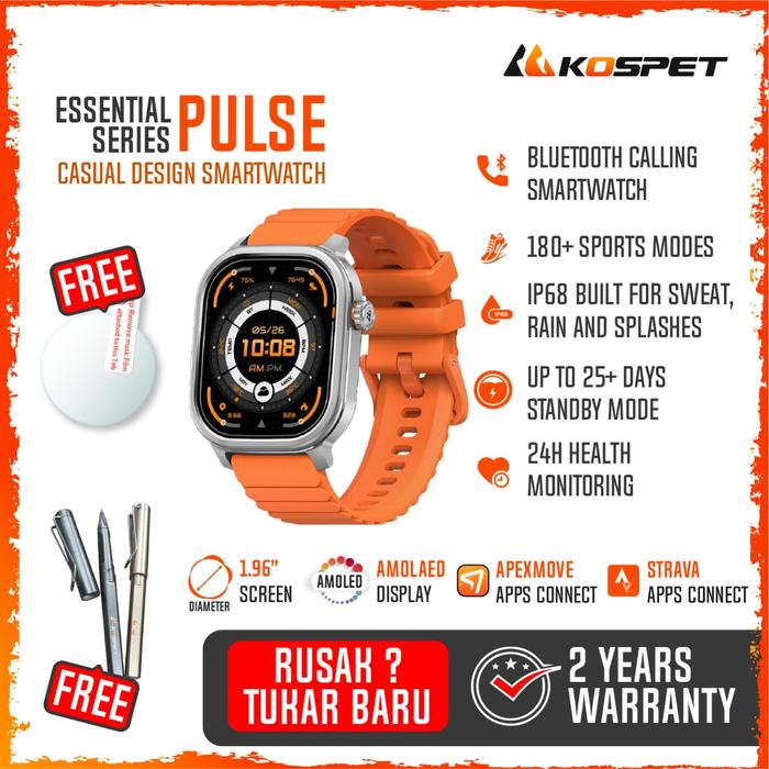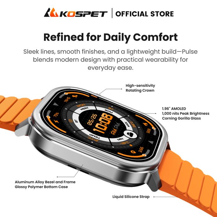 KOSPET PULSE CASUAL SPORTY SMARTWATCH 1.96” AMOLED | SPORTS TRACKING | HEALTH MANAGEMENT | STRAVA SUPPORT - BLACK
