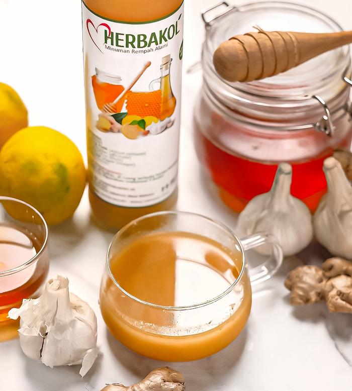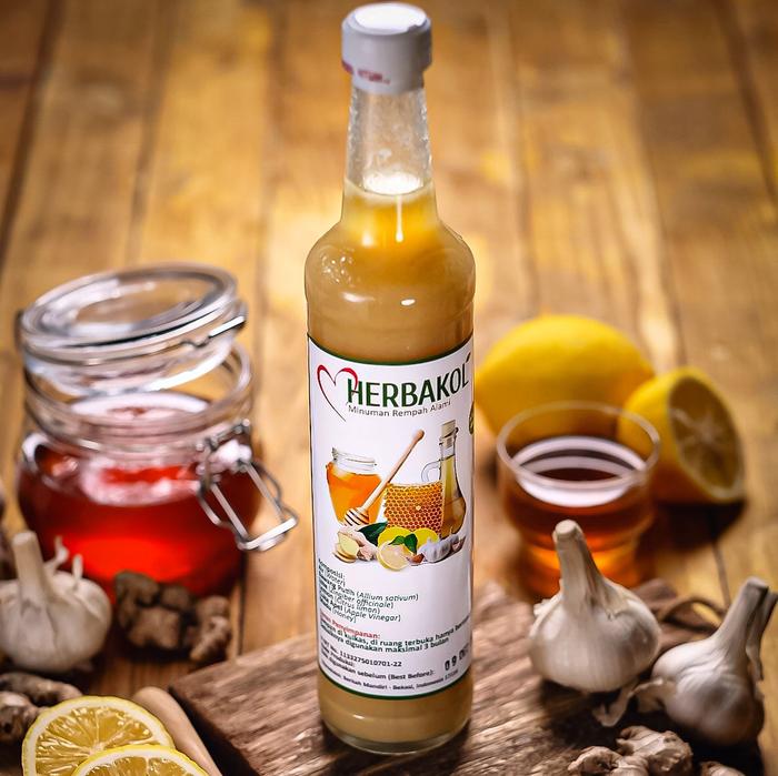 Herbakol (Paket 2 Botol) Jus Bawang Putih Lemon Jahe Merah Cuka Apel Madu Hutan Kayu Manis Minuman Garlic Juice Botol Ka