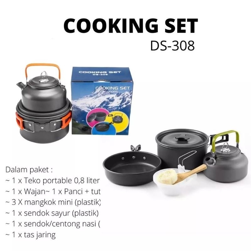 DS-308 Cooking Set Outdoor Nesting Teko Misting DS308 Ketel Portable Alat masak Camping