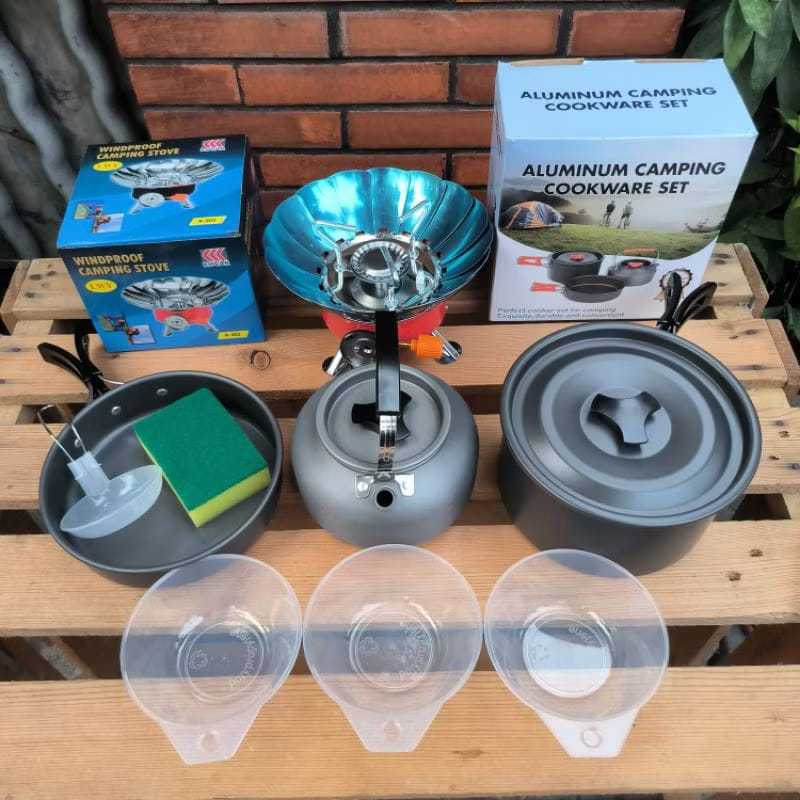 Cooking Set Camping TZ308 Nesting Camping DS308 Plus Teko Alat Masak Camping Outdoor Portabel
