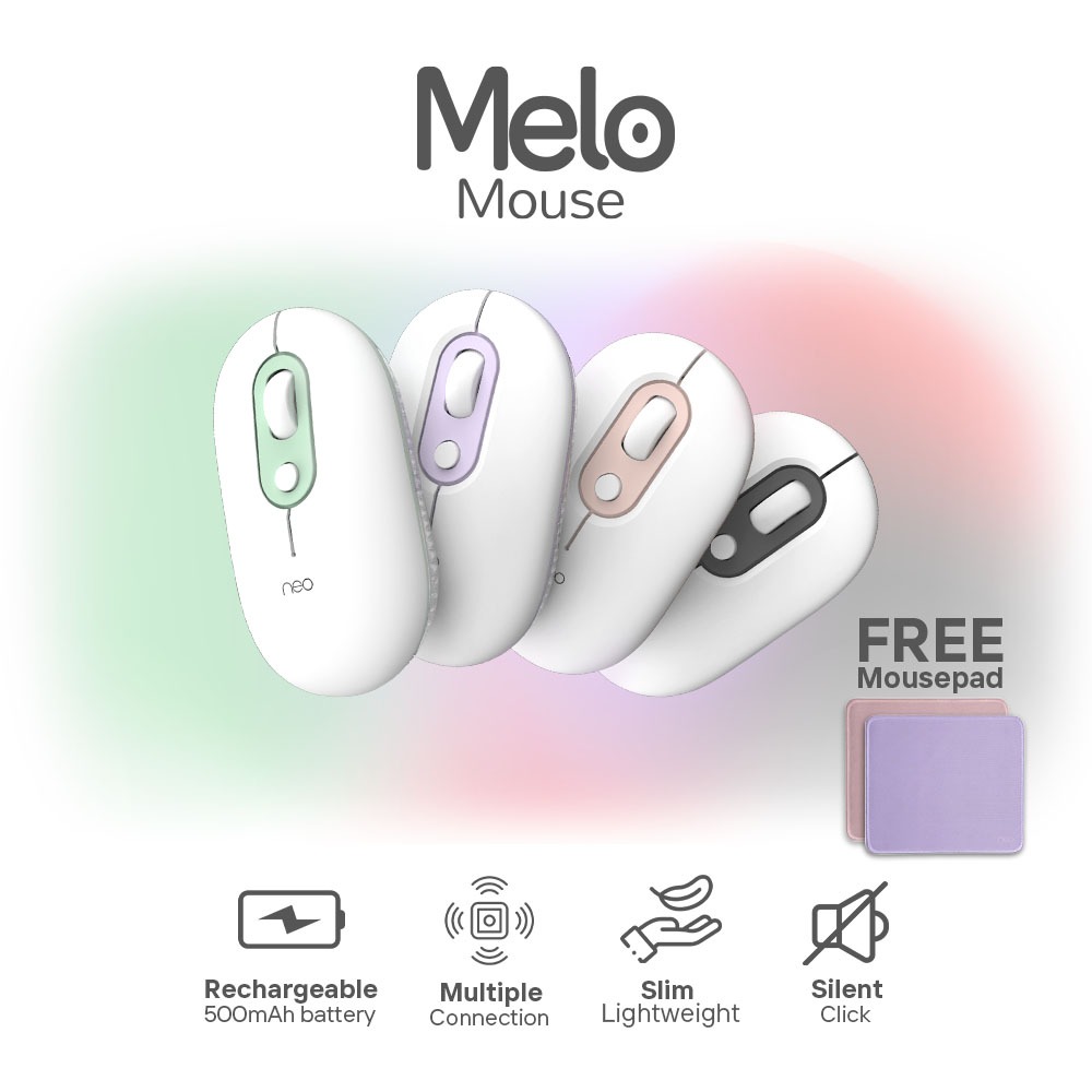 Neo Melo Mouse - Wireless Bluetooth Slim Silent Click USB-C Charging