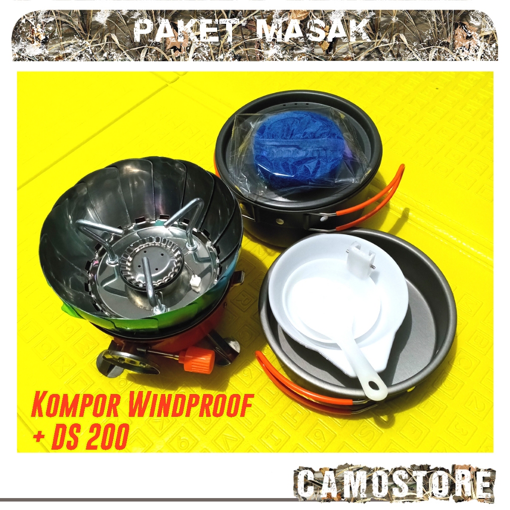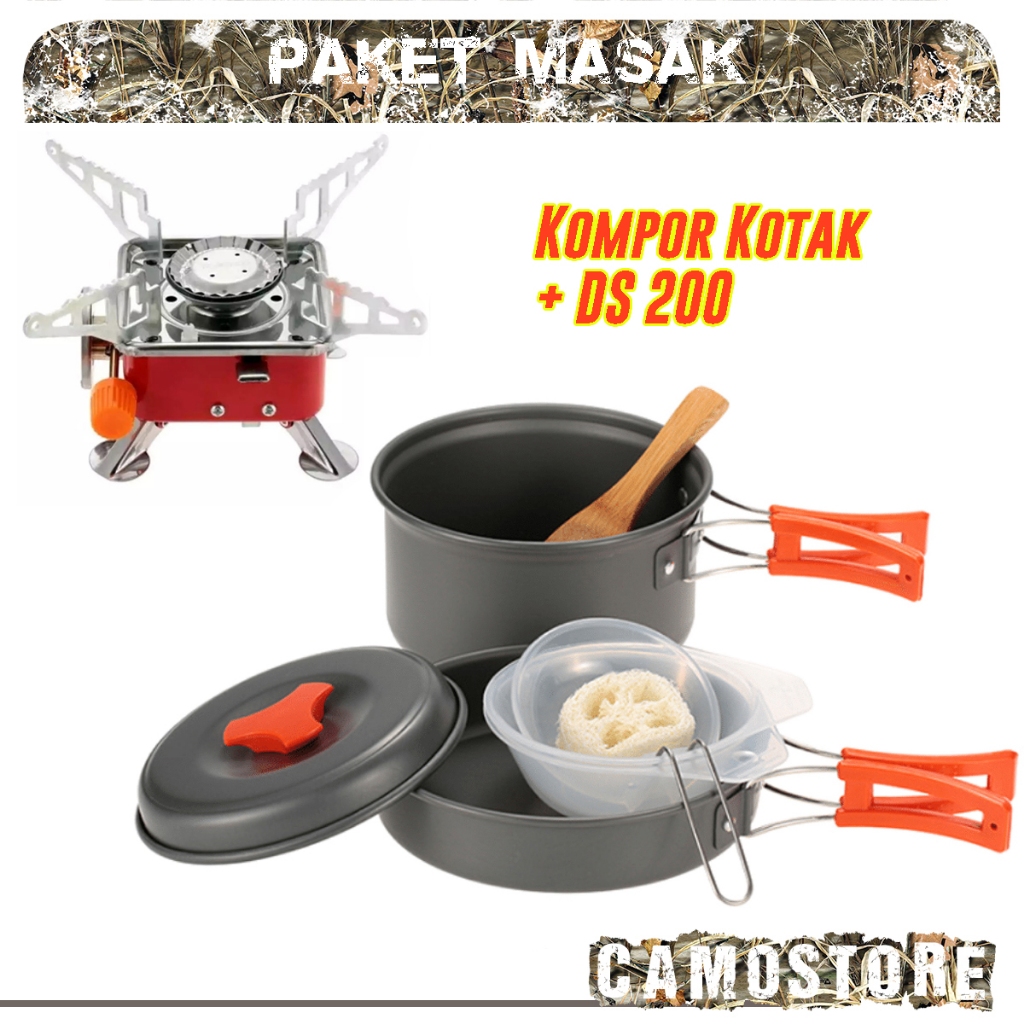 Paket Alat Masak kompor Camping + Cooking Set Ds 200 DS200 LX200 Windproof untuk 1-2 orang