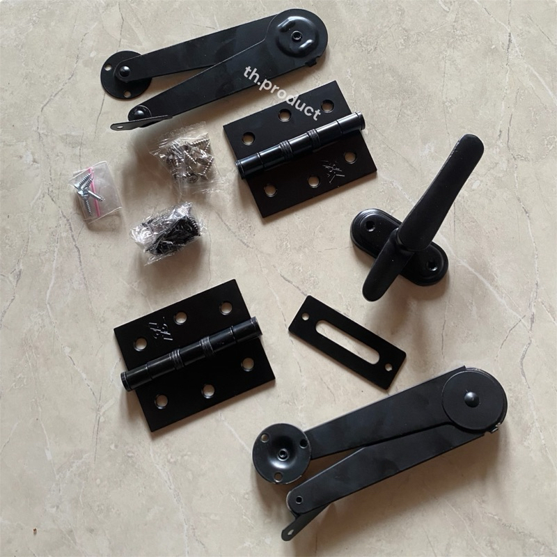 Paket Komplit Jendela Rumah 3 inch Hitam Engsel 3 inch Rambuncis Sikutan
