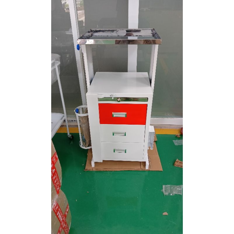 Troli Emergency Besi Kokoh Dengan Tiang Infus