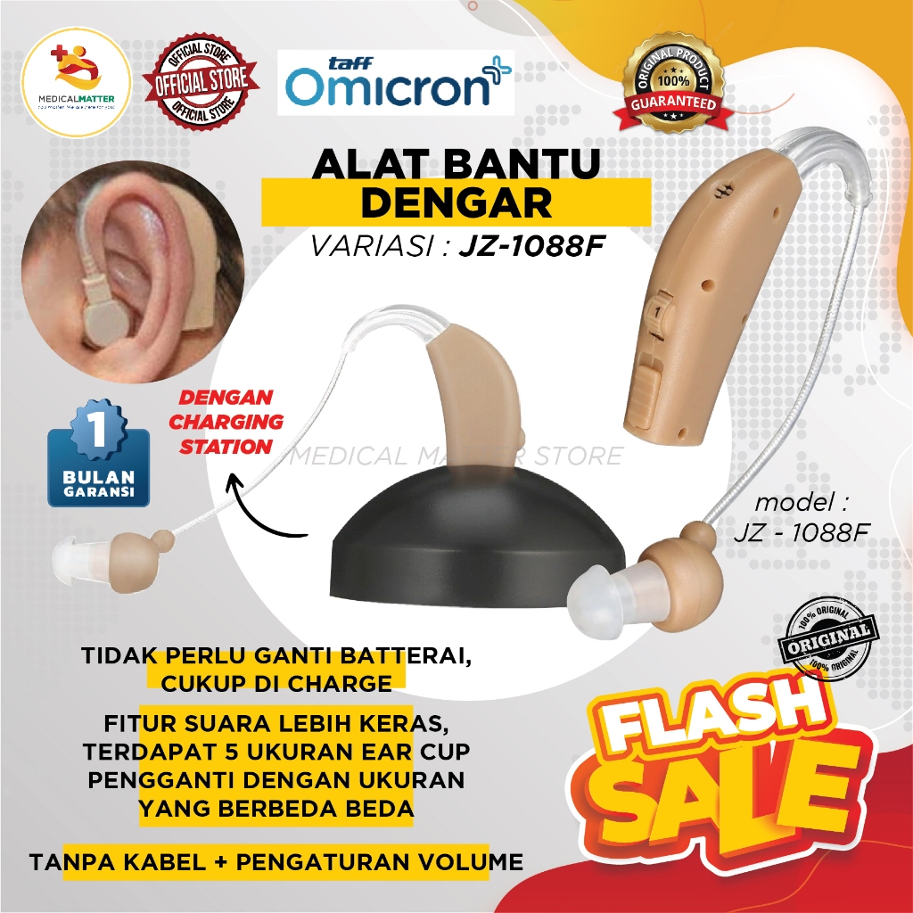 TaffOmicron Alat Bantu Dengar Mini Charger In Ear Hearing Aid with Charging Station JZ1088F Original