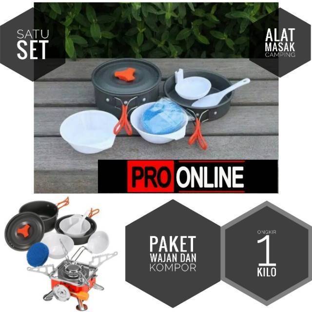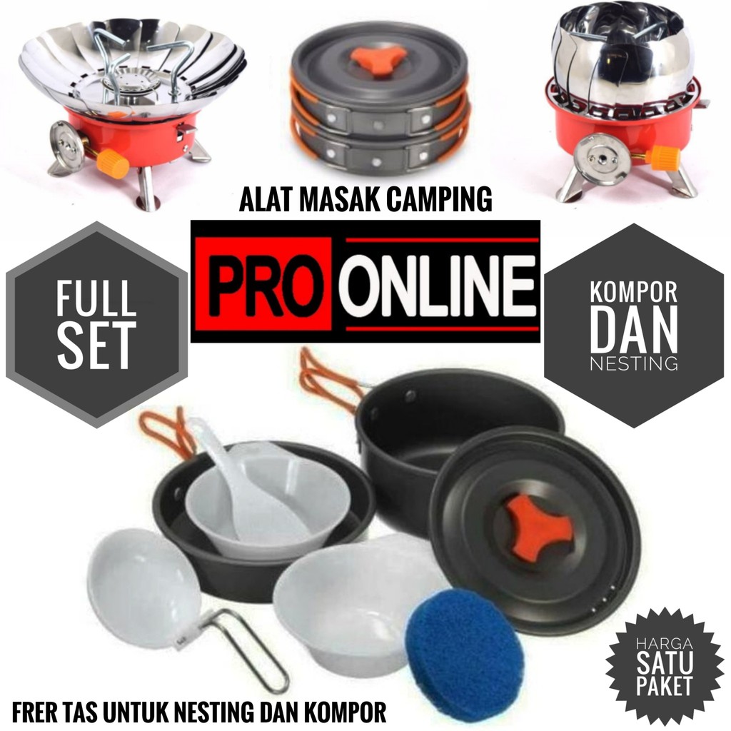 Paket Cooking set 2-3 Orang + Kompor Portable Dan Windproof - Mawar Atau Kotak - Alat Masak 2 Susun