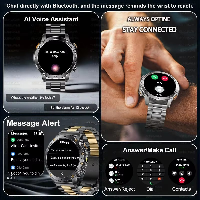 LIGE Smart Watch Men 1000mAh Large Capacity Battery Sport Watch Outdoor Flashlight Bluetooth Call Waterproof Smartwatch