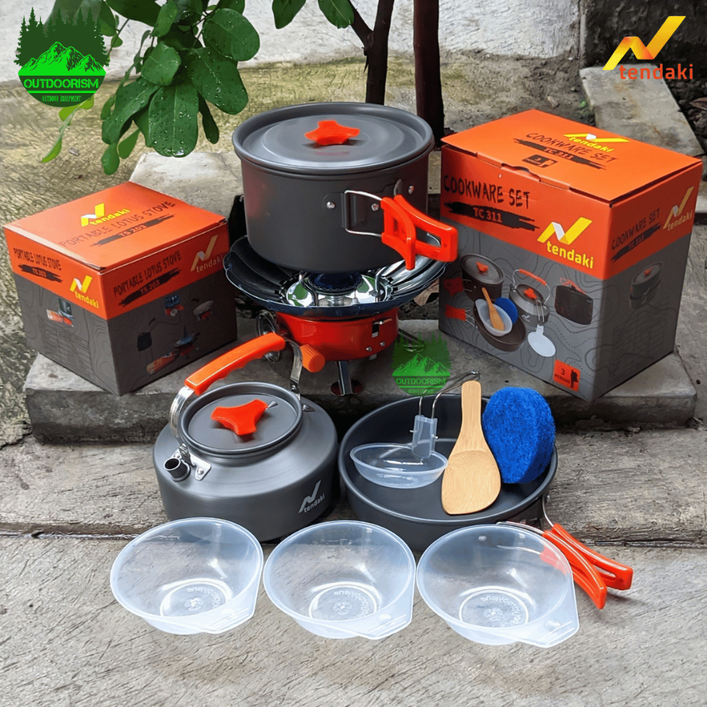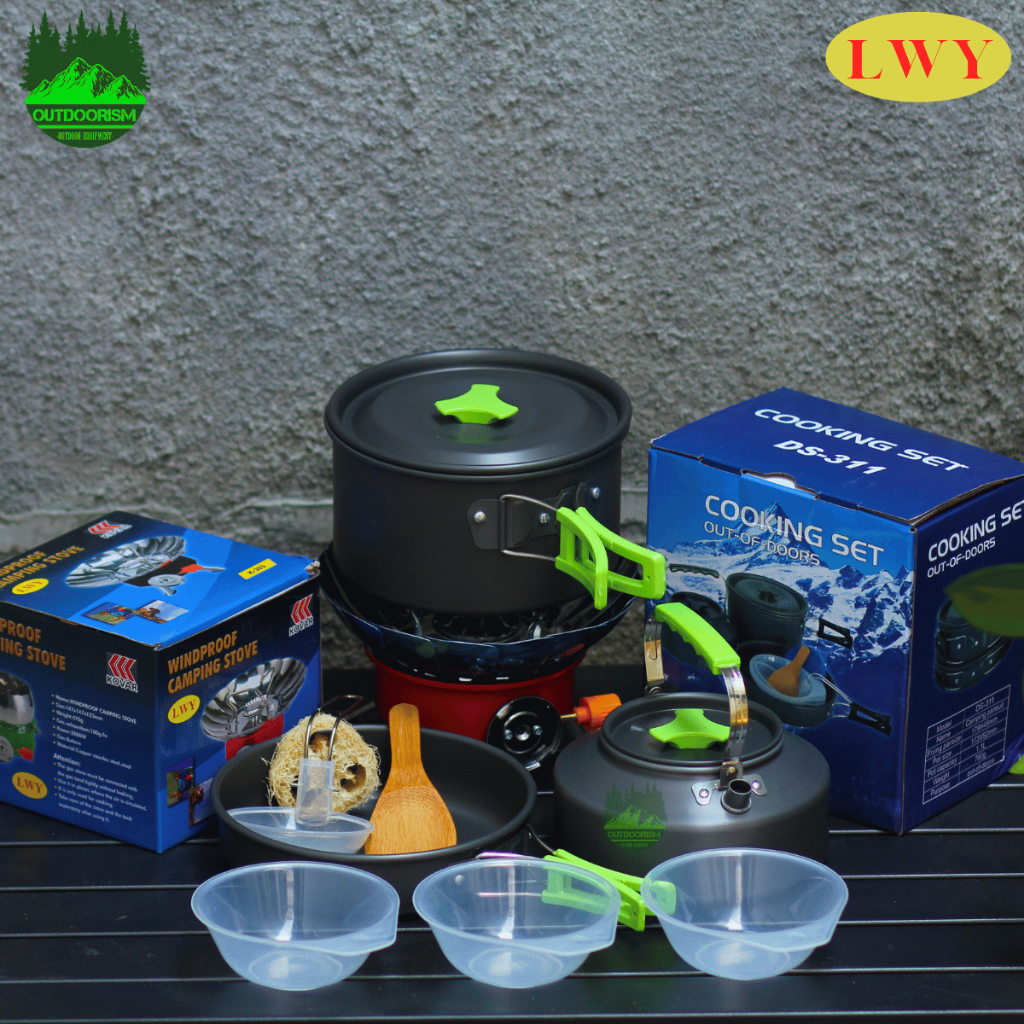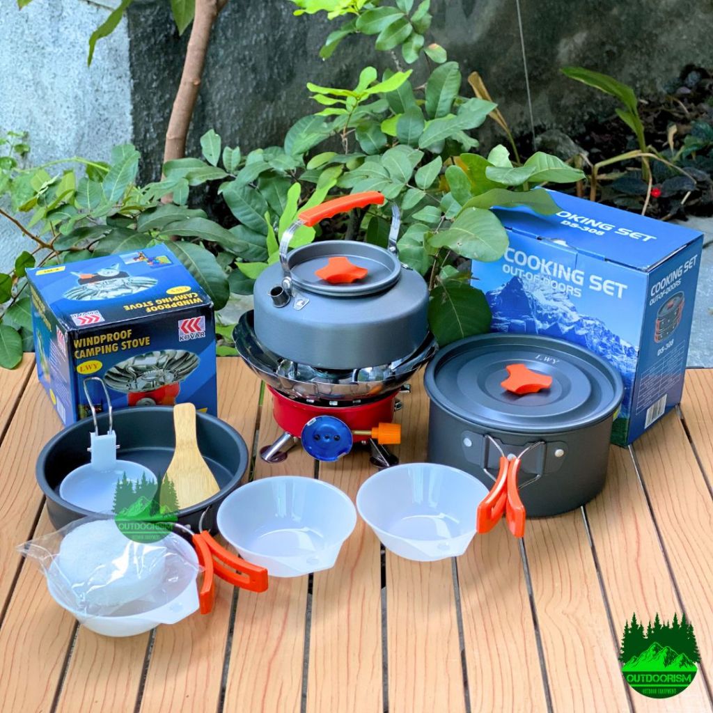 OUTDOORISM || Paket Hemat Cooking Set + Kompor Gas Camping Portable Alat Masak Camping Portable