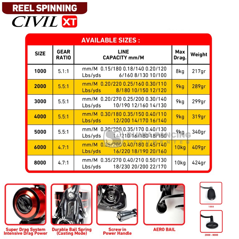 Reel Spinning MAGURO CIVIL XT 5+1 Ball Bearing Power Handle