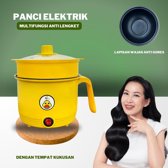 P Plus Panci Elektrik Serbaguna Bebek Kuning/Pancil Elektrik Multifungsi Anti Lengket Listrik Pancil Rice Cooker Panci K